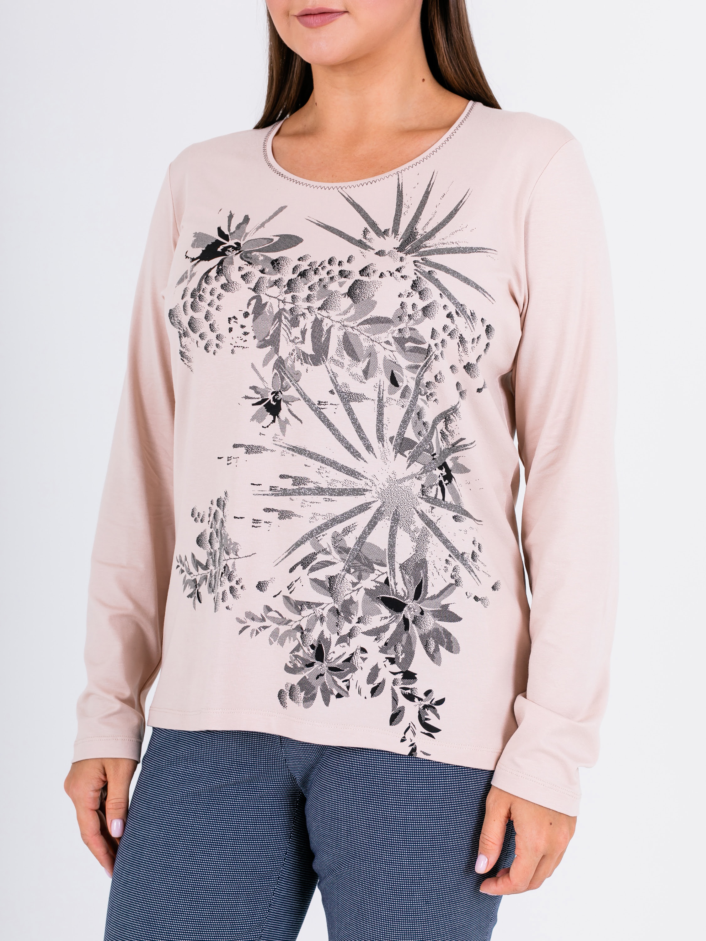 На сайте указаны российские размеры. Ткань: 92% вискоза, 8% эластан. Крой: классическая удлиненная модель свободного силуэта с длинными рукавами и круглым горлом. Приятный гладкий материал позволяет телу дышать, а вам ощущать комфорт и тепло. Универсальная модель, подходящая женщинам с разным типом фигур. Отделка: сочетание нежного розового и серого – одно из самых удачных и актуальных. Вырез джемпера украшает контрастный зигзаг, который приковывает внимание к деталям. В ассортименте Stern вы найдете десятки вариантов для создания ярких образов с этим джемпером. Загляните в разделы брюк, юбок и джинсов на нашем сайте.