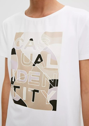 На сайте указаны российские размеры. Повседневная футболка с анималистичным прорезиненным принтом. Круглый вырез горловины с окантовкой в рубчик. Длина спинки в 42 размере - 62 см.