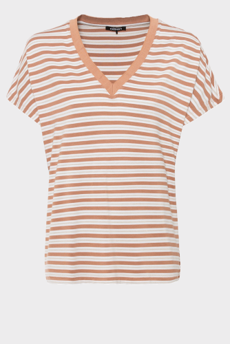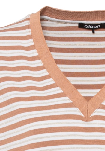 Прекрасная струящаяся драпировка из вискозы с тонким золотым люрексом придает классическим полоскам нотку дневного гламура. Модель с v-образным вырезом и рукавами «летучая мышь».