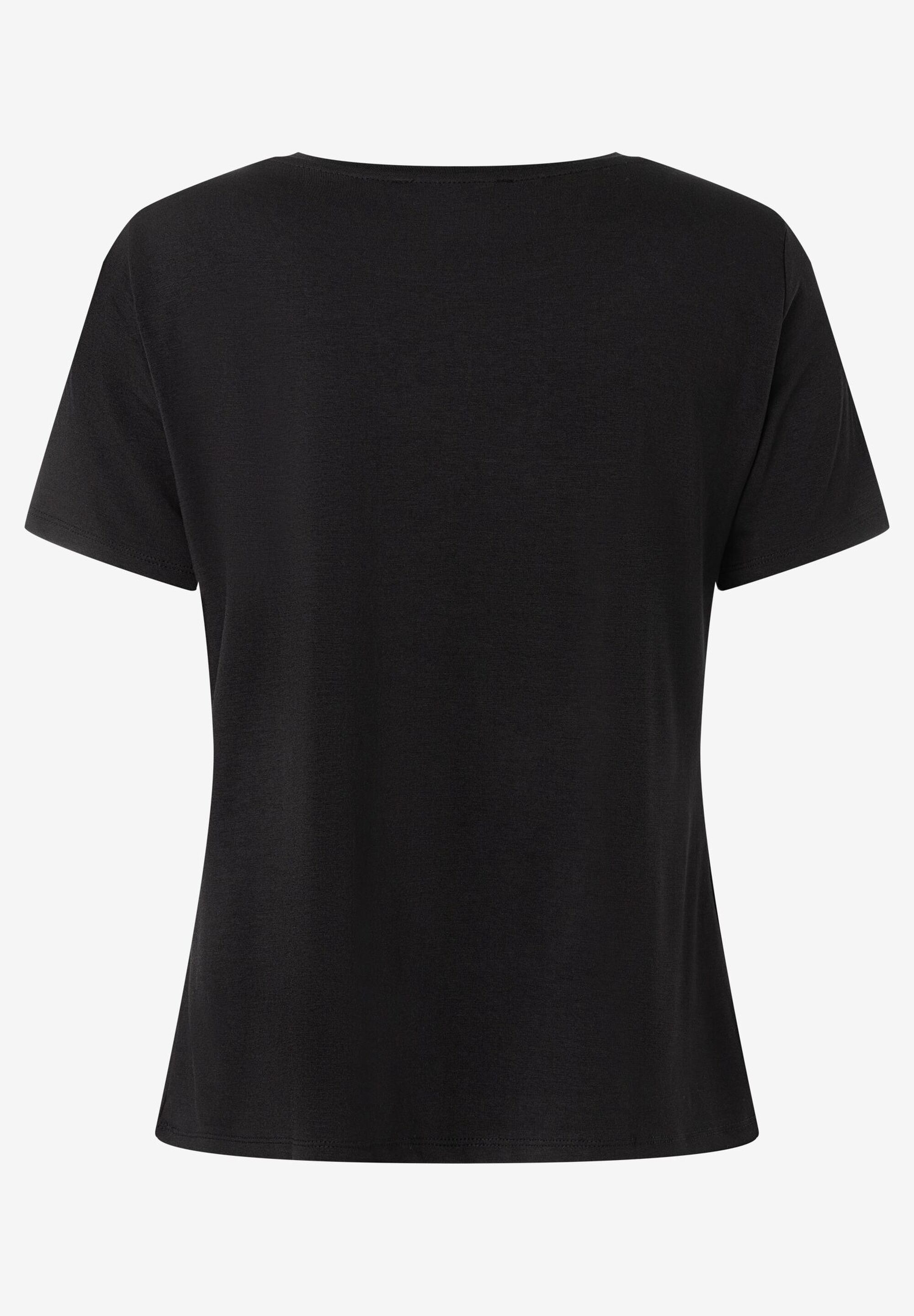 Привлекательная футболка MORE & MORE со сверкающим сердечком из стразов спереди привлекает внимание и одинаково хорошо смотрится с выцветшими джинсами, струящейся тюлевой юбкой или классическими деловыми брюками. Gрямая, свободная форма. круглый вырез и короткие рукава. Сзади немного длиннее, чем спереди. Длина по размеру 42 = 60 см