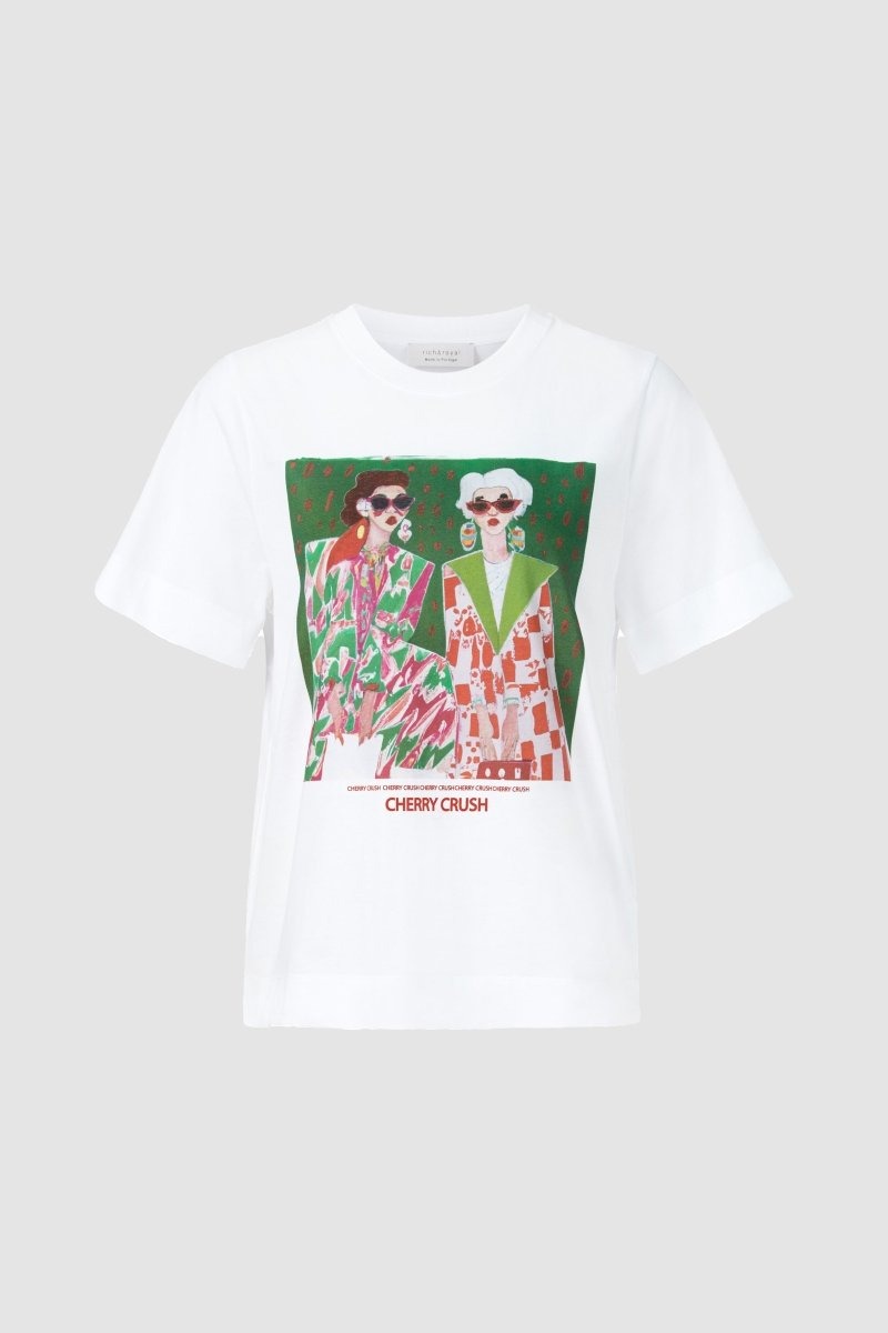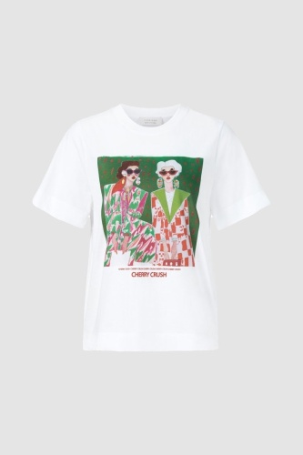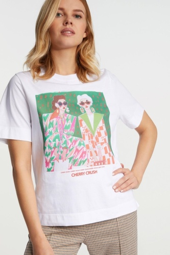 Стильной изюминкой этой футболки является надпись Cherry Crush с ярким цветным принтом. Широкий крой с разрезами и круглым вырезом. Длина для размера 42: 64 см. Окружность груди для размера 42: 96 см.