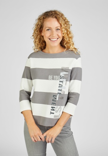 Толстовка с модными рукавами 3/4 украшена блестящими деталями, которые придают вашему образу особую индивидуальность. Длина спинки от плеча для 44 размера: 62 см.