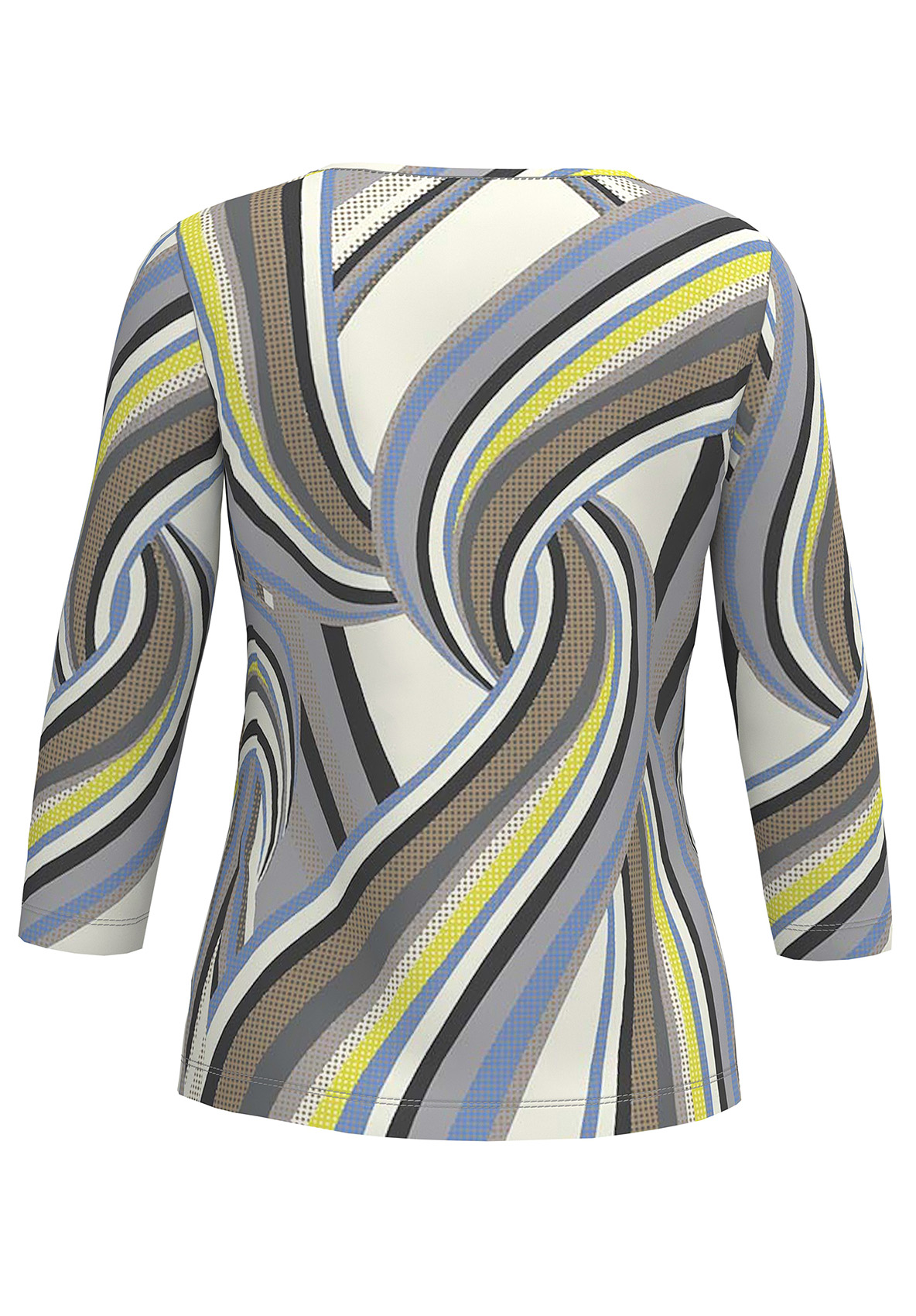 Эта футболка приковывает к себе взгляды благодаря своему фантазийному принту. Покрой по фигуре, круглый вырез горловины, втачные рукава 3/4. Приятный к телу эластичный вискозный материал обеспечивает комфорт в ношении.