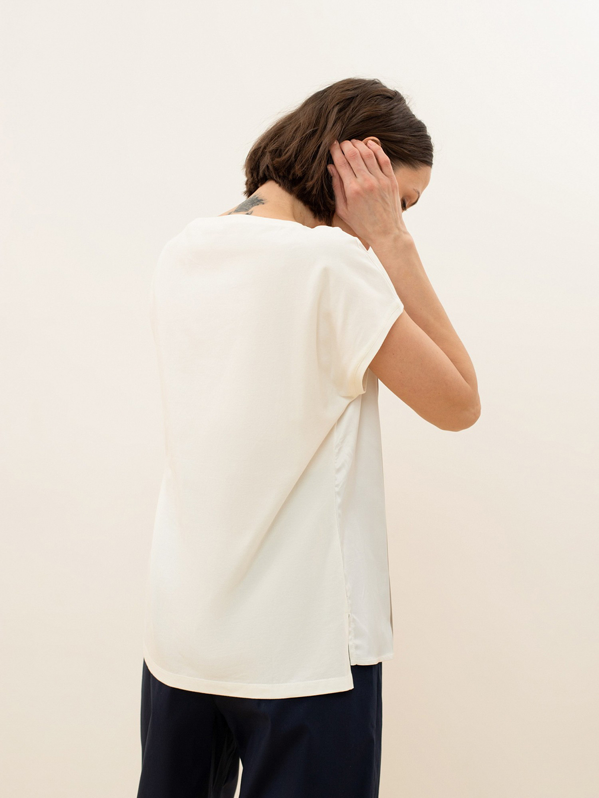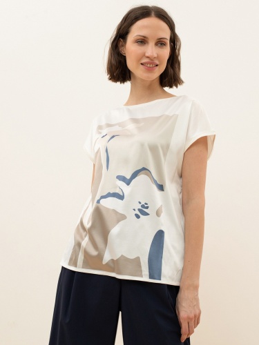 Комбинированный топ из хлопкового трикотажа с принтом. Передняя часть: атласная ткань с принтом. Задняя часть: 95% хлопок.