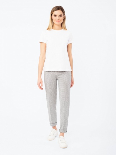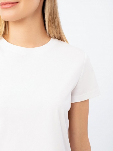 Базовая белая футболка полуприлегающего силуэта из мерсеризованного хлопка. Короткий втачной рукав, круглый вырез горловины.