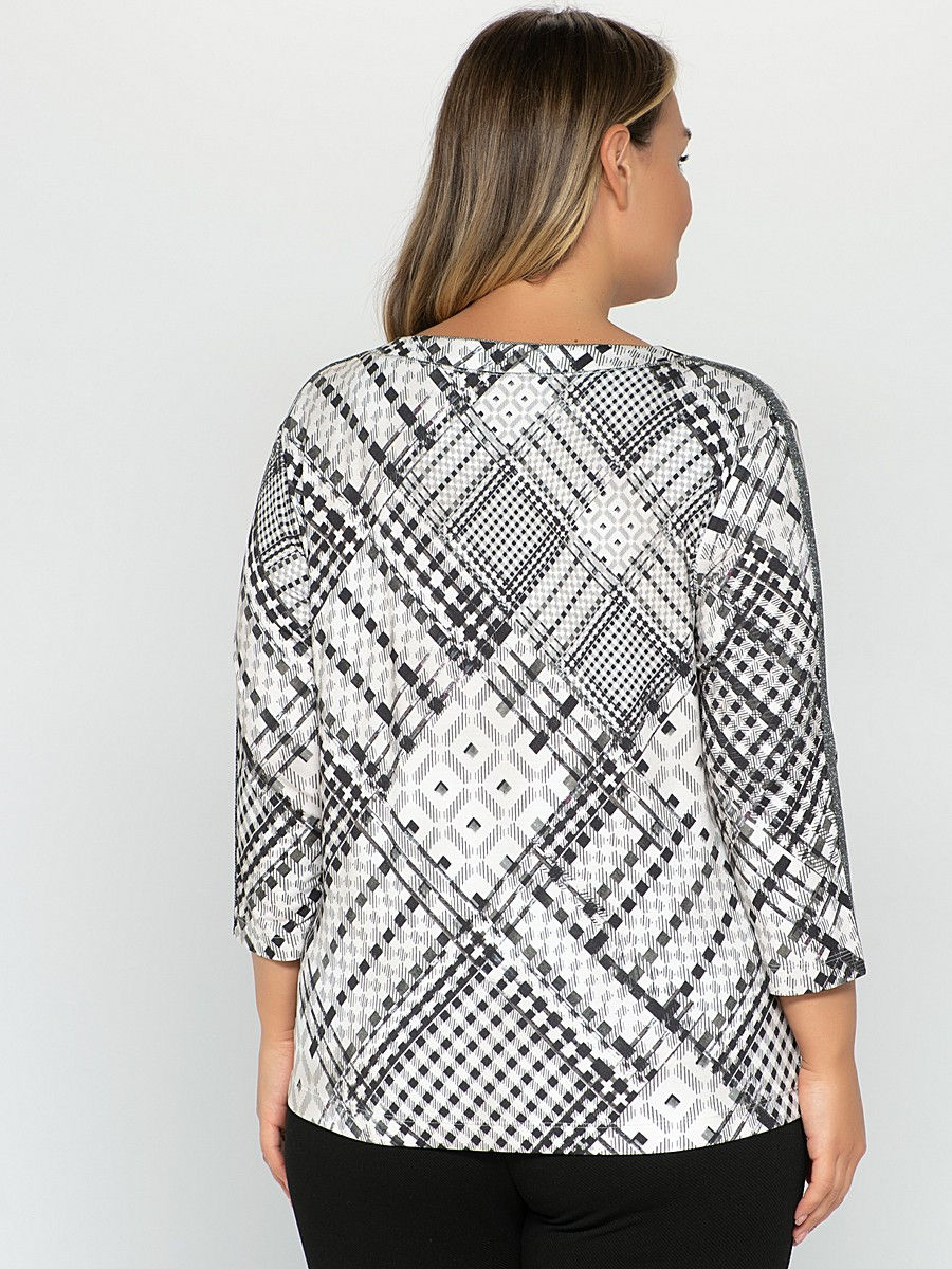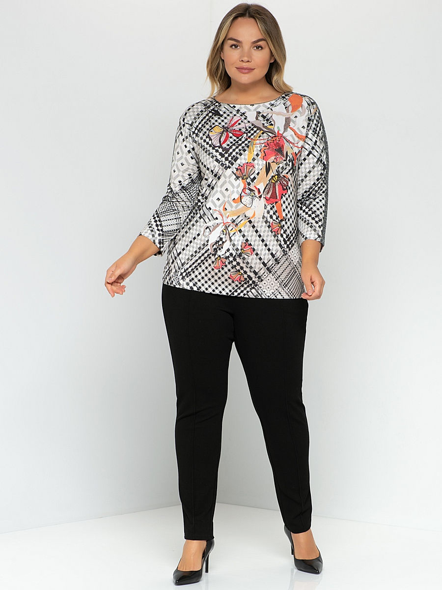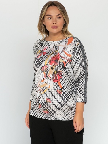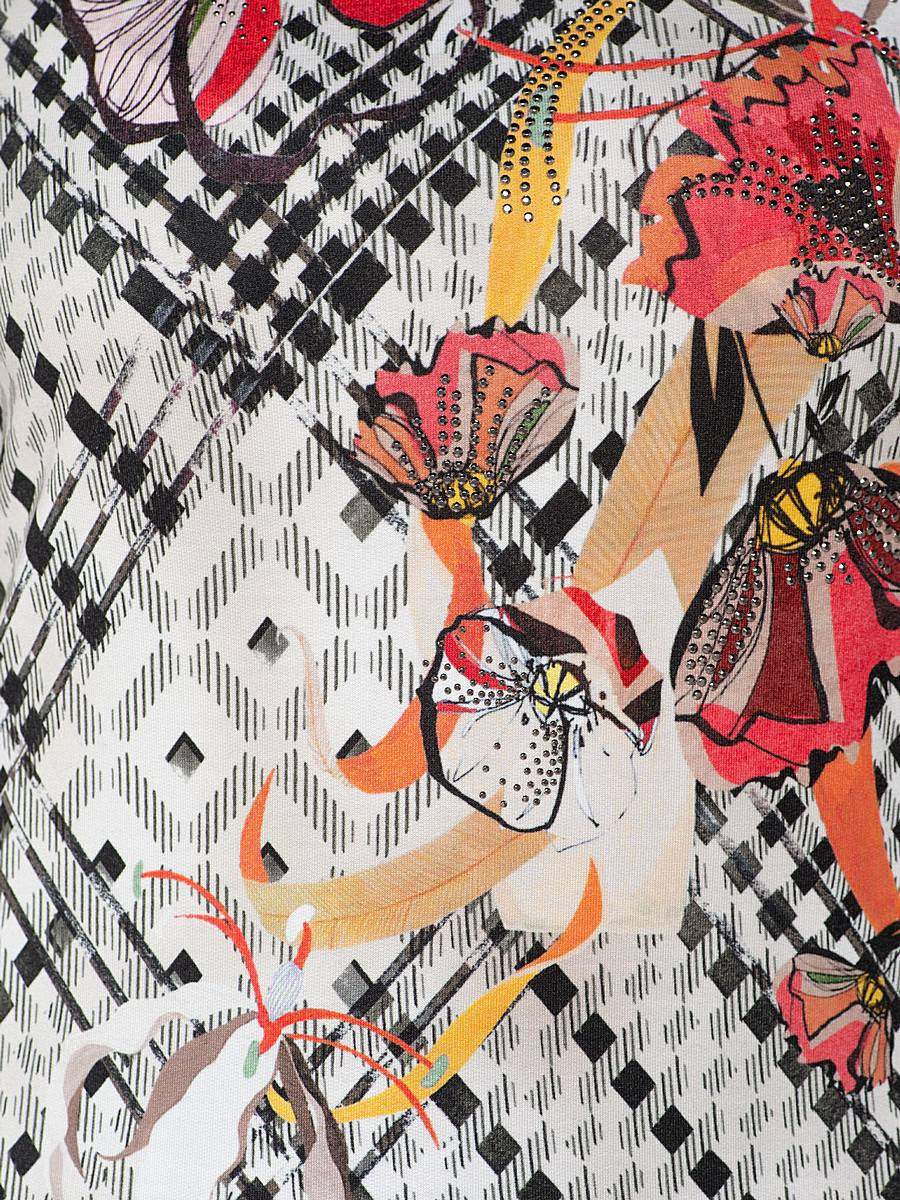 Футболка с длинными рукавами - отличный выбор для повседневного образа. Прямой покрой, круглый вырез горловины. Смелое сочетание клетки и цветов в принте подчеркивается декором из страз. Приятный к телу эластичный материал с вискозой и модалом обеспечивает комфорт в ношении.
