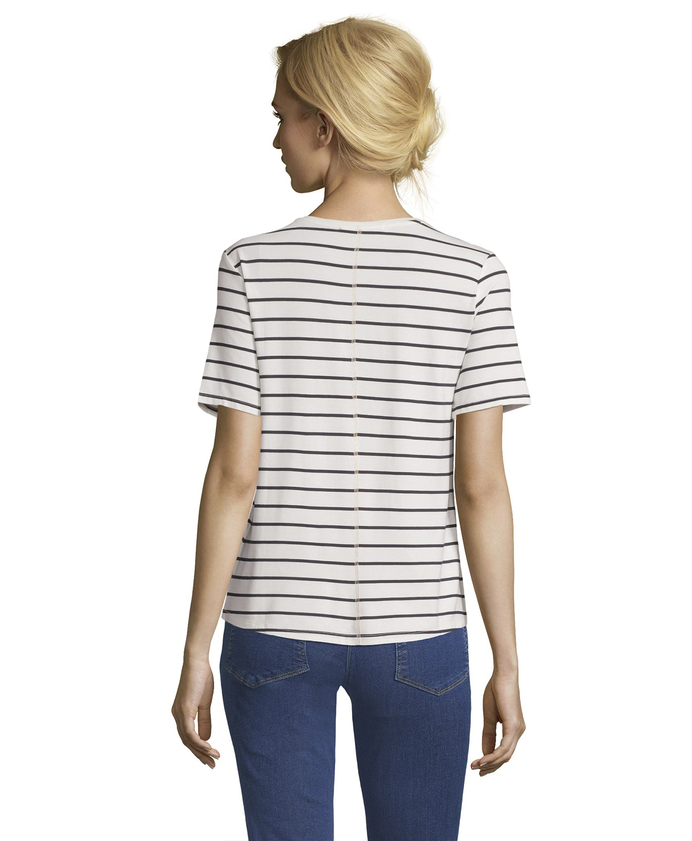 Полосатая футболка с принтом и пайетками - воплощение стиля кэжуал! Прямой покрой, круглый вырез горловины, рукава 1/2. Материал из вискозной смеси приятен к телу и обеспечивает комфорт. Эта футболка отлично дополняет образ с джинсами и кроссовками.