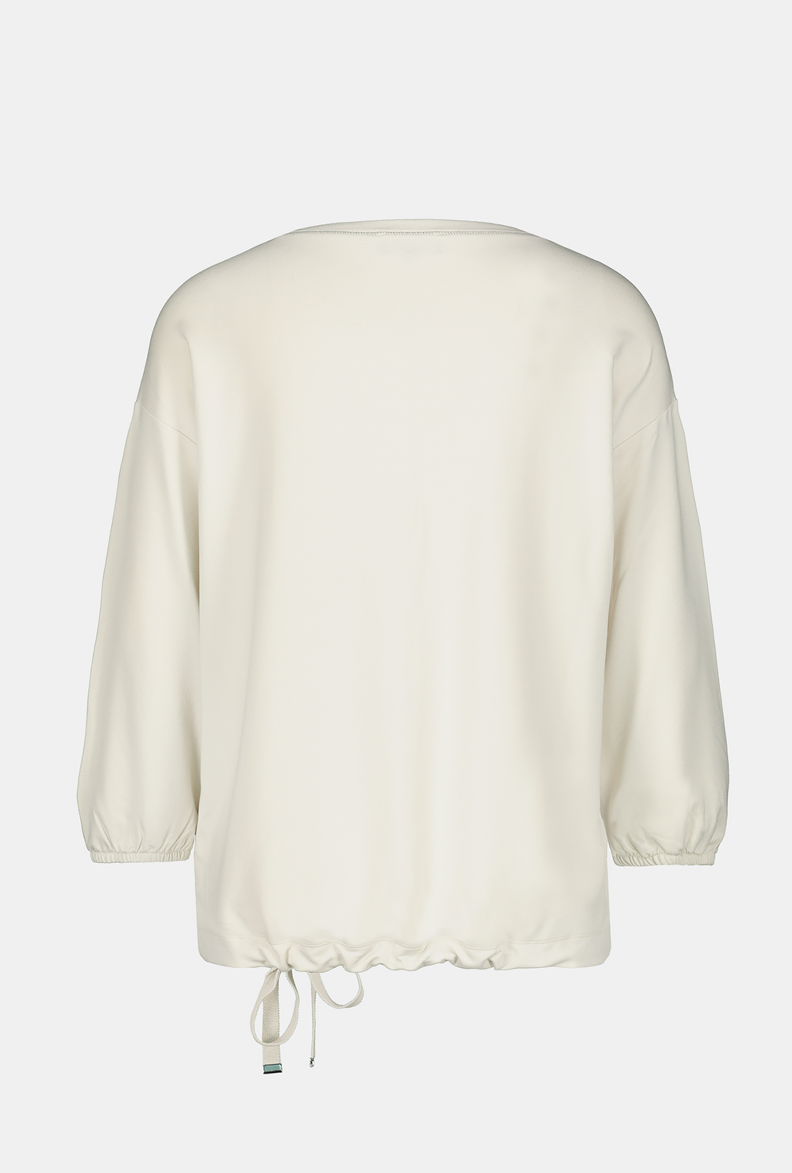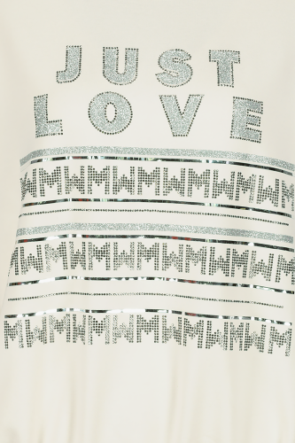 Джемпер свободного силуэта идеально скроет недостатки фигуры и подчеркнет ее достоинства. Практичный вариант для повседневного стиля. На груди яркий принт, украшенный стразами. Втачной рукав ¾, спущенная линия плеча. Кулиска по низу изделия.