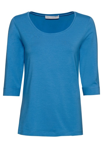 Простая футболка прямого покроя - обязательный элемент базового гардероба. Приятный к телу материал из смеси хлопка, модала и эластана обеспечит комфорт и идеальную посадку. Рукав 2/3 и широкая круглая горловина придают модели непринужденный вид. Эта футболка подходит как для офиса, так и для прогулки.