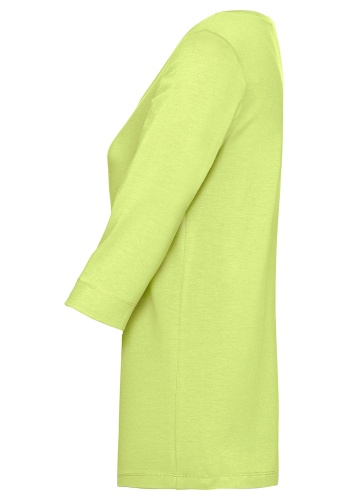 Простая футболка прямого покроя - обязательный элемент базового гардероба. Приятный к телу материал из смеси хлопка, модала и эластана обеспечит комфорт и идеальную посадку. Рукав 2/3 и широкая круглая горловина придают модели непринужденный вид. Эта футболка подходит как для офиса, так и для прогулки.