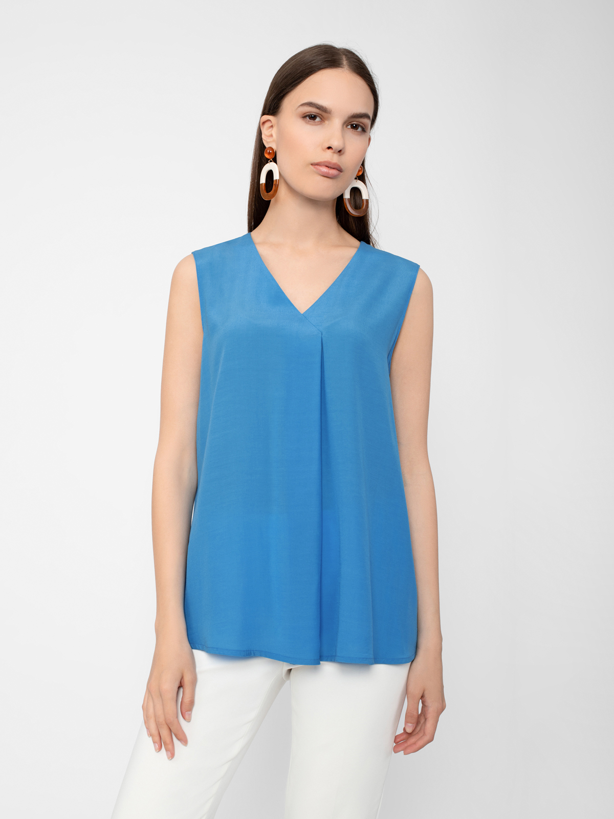 Топ из вискозы прямого силуэта без рукавов с v-образным вырезом горловины. Спереди вертикальная декоративная складка.