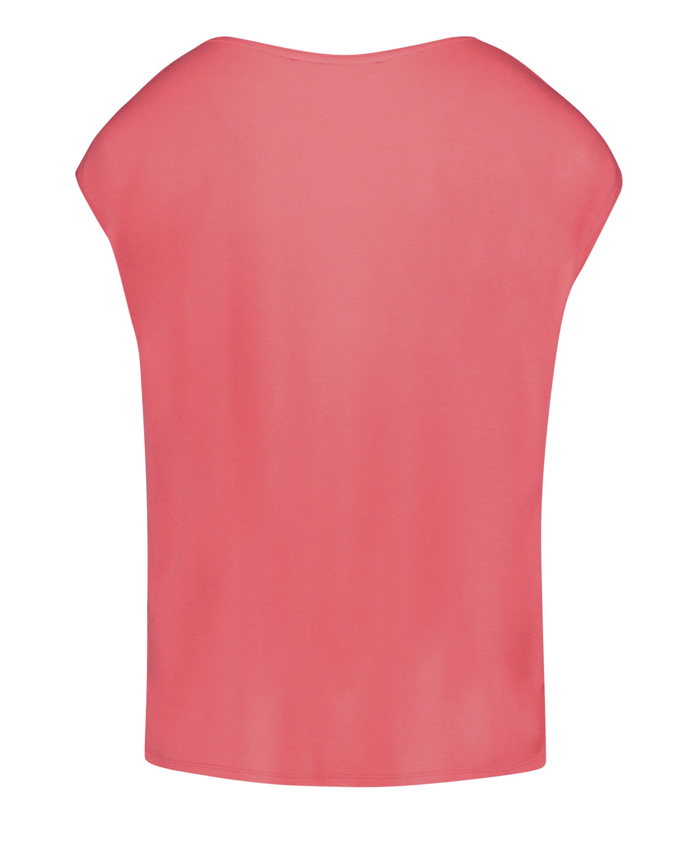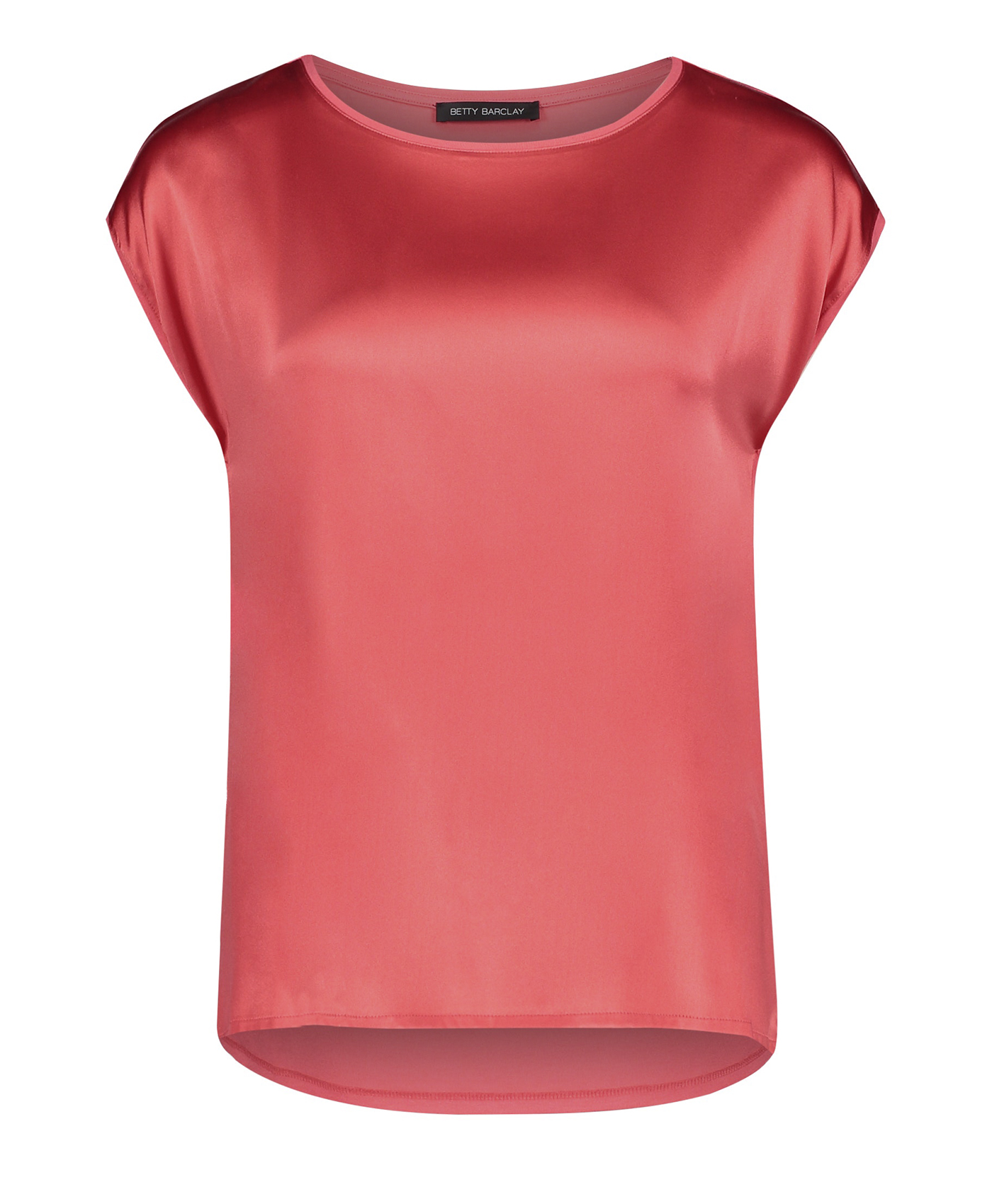 Однотонная футболка - обязательная модель любого гардероба! Прямой покрой, вырез горловины "лодочка", короткие цельнокроеные рукава. Благородный материал из смеси шелка приятен к телу. Атласный блеск передней части изделия контрастирует с матовым материалом спинки. Эта универсальная футболка смотрится очень элегантно и станет изюминкой вашего делового образа.