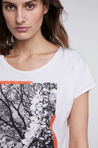 Футболка прямого силуэта - абсолютный тренд. Широкий круглый вырез горловины, короткие рукава. Принт с яркими акцентами привлекает внимание. Хлопковый материал приятен к телу и обеспечивает комфорт. Эта модель в стиле кэжуал обеспечивает создание современного демократичного образа.