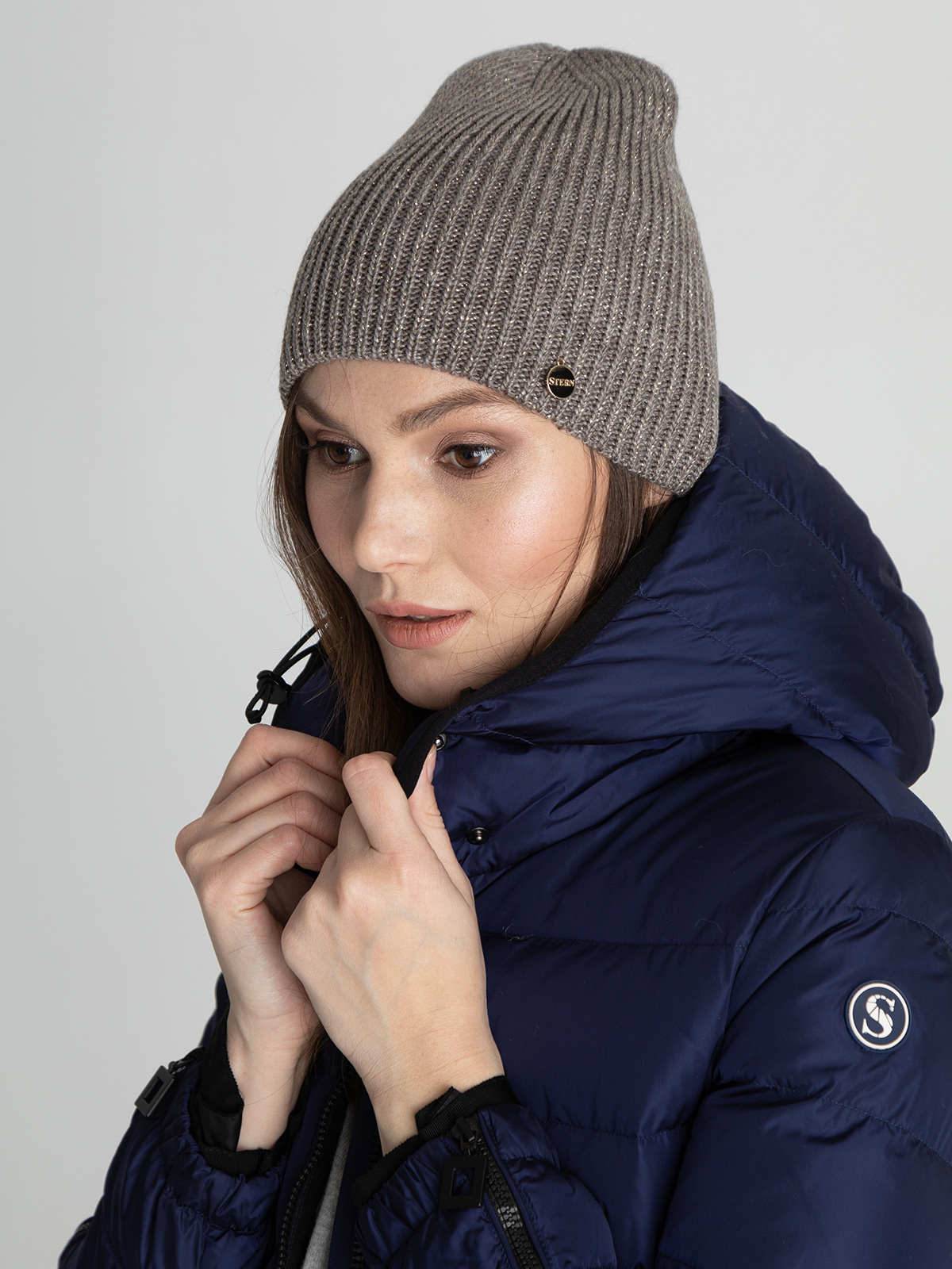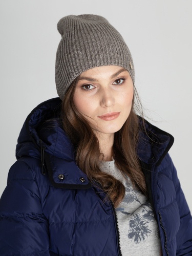 Шапка-бини мелкой вязки в рубчик подойдет для любого типа лица. Материал приятен на ощупь и хорошо сохраняет тепло. Нить люрекса в составе придает акцентый блеск.