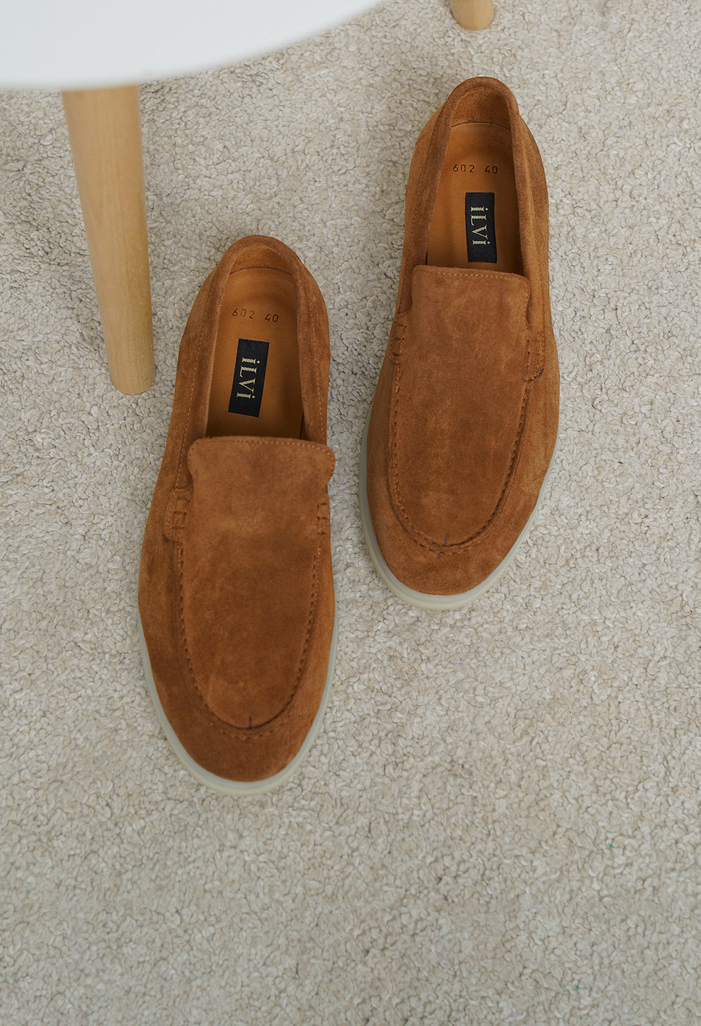Коричневые замшевые кожаные женские лоферы. Изготовлено из высококачественной телячьей кожи. Bысота подошвы: 2 см. Резиновая подошва. Ручная работа.