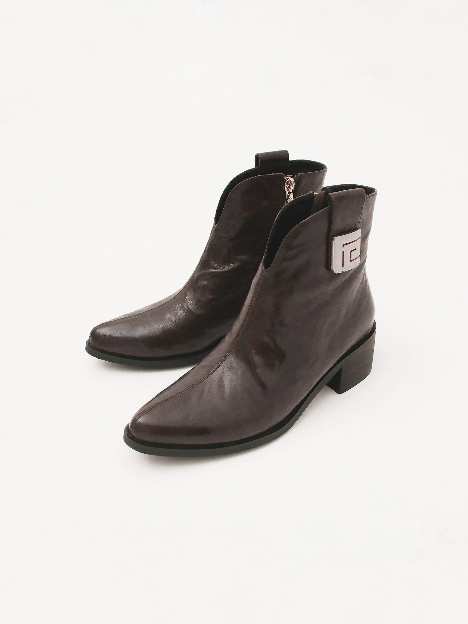 Демисезонные ботинки тёмно-бордового цвета из натуральной кожи с фактурной поверхностью. Полусапожки украшены металлическим декором в верхней части изделия. Стильная, комфортная пара на невысоком устойчивом каблуке. Обувь утеплена байкой.