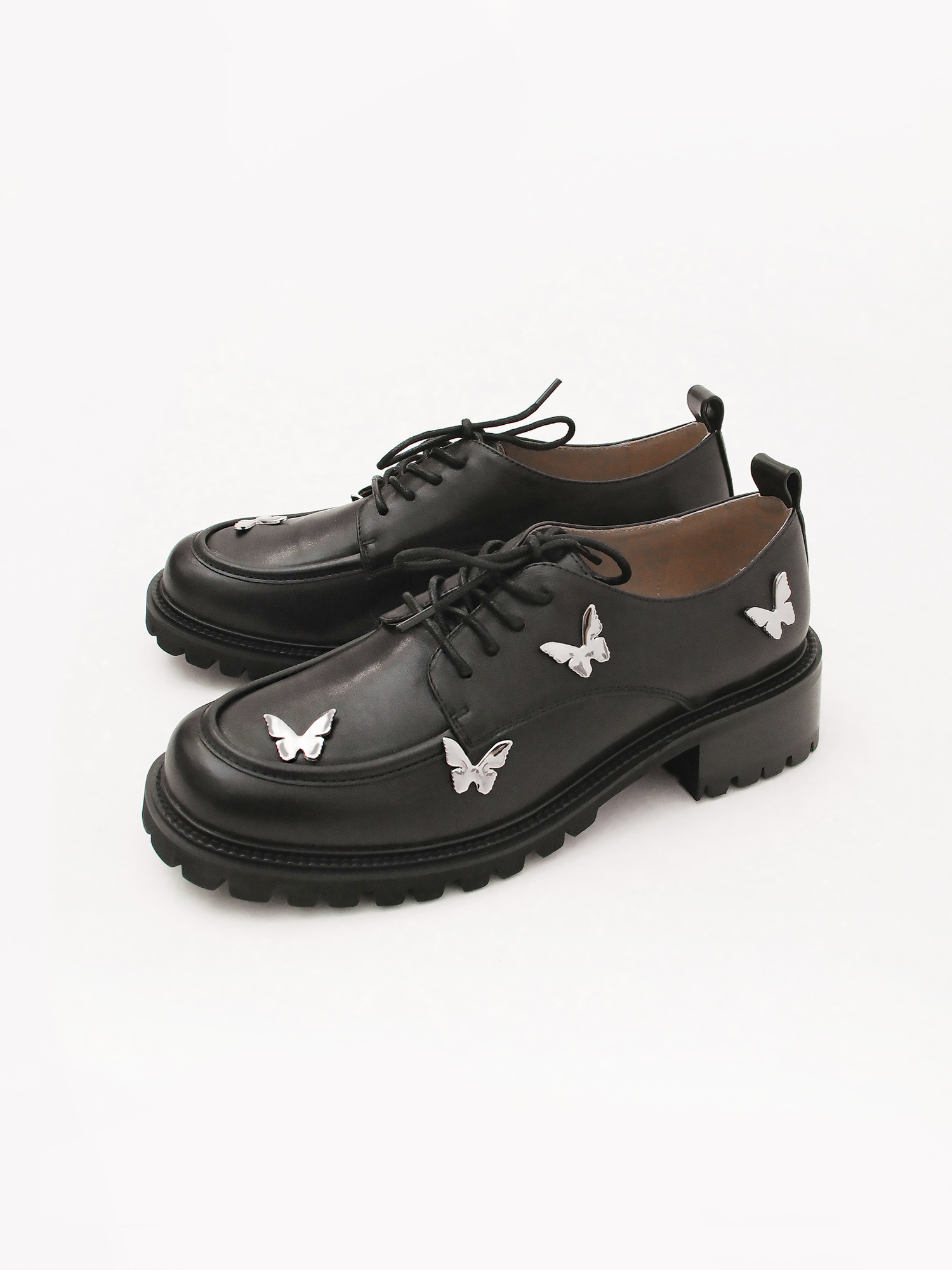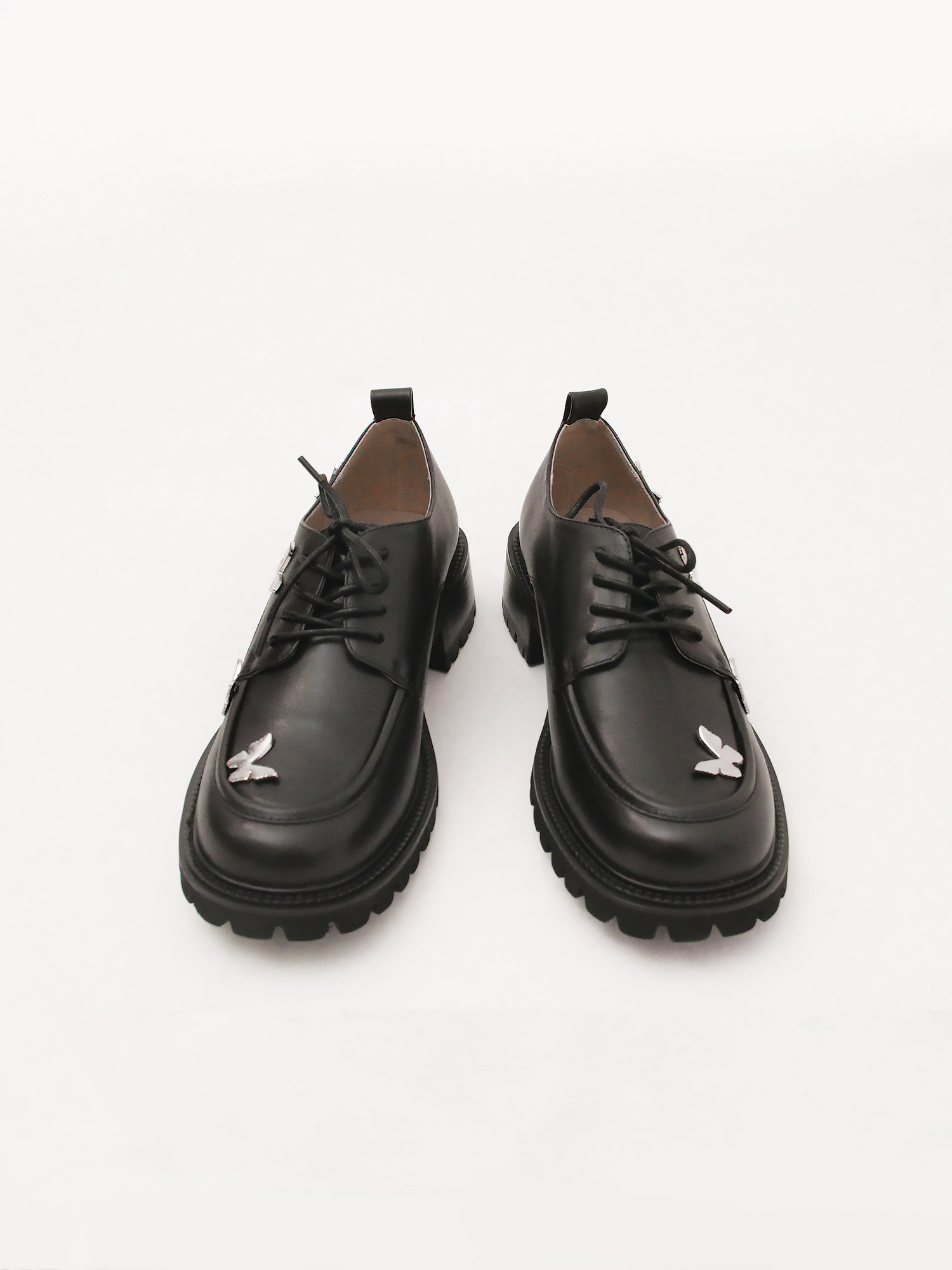 Оригинальные короткие ботинки итальянского бренда TUFFONI. Пара выполнена из натуральной кожи. Украшена металлическим декором в виде бабочек.