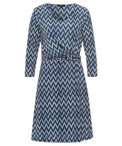 Платье с запахом. Длина выше колена. Геометрический узор. Широкая овальная горловина, втачной рукав ¾.