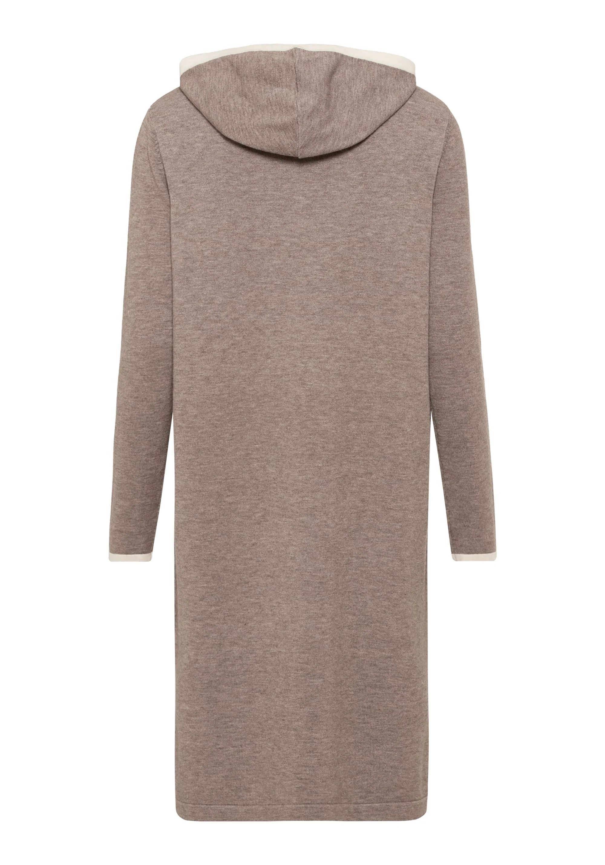На сайте указаны российские размеры. Платье-свитер, выполненное из мягкой меланжевой пряжи и функциональной кулиской, украшено спортивными полосками на рукавах, придающими изделию особую нотку.