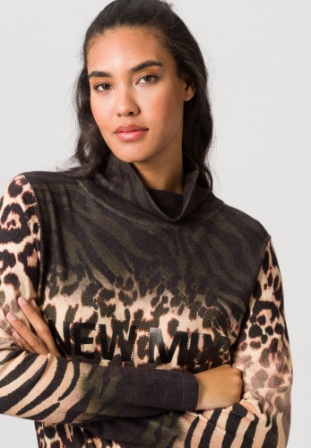 Одна из наиболее часто встречающихся модных тенденций текущего сезона – вязаные платья самых разнообразных фасонов. Эту модель водолазки с длинными рукавами чрезвычайно удобно носить благодаря прямому крою и мягкому тонкому трикотажу. Градиентный животный принт. ПЛАТЬЕ В ПРОДАЖЕ БЕЗ НАДПИСИ НА ГРУДИ.