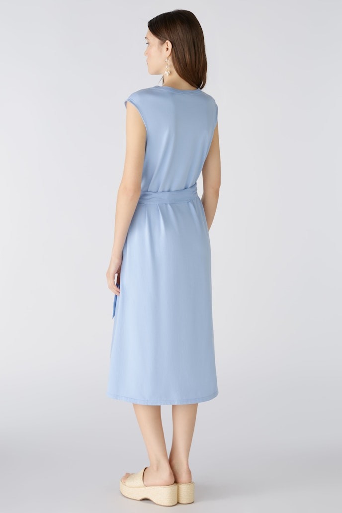 Платье без рукавов – легкое в образе футболки с удобной льняно-хлопковой нашивкой. Узкий крой, длина миди. Круглый вырез горловины с ребристыми манжетами. Боковые карманы. Можно носить с поясом или без него. Без застежки, удобно надевать. Длина для размера 42: 120 см.