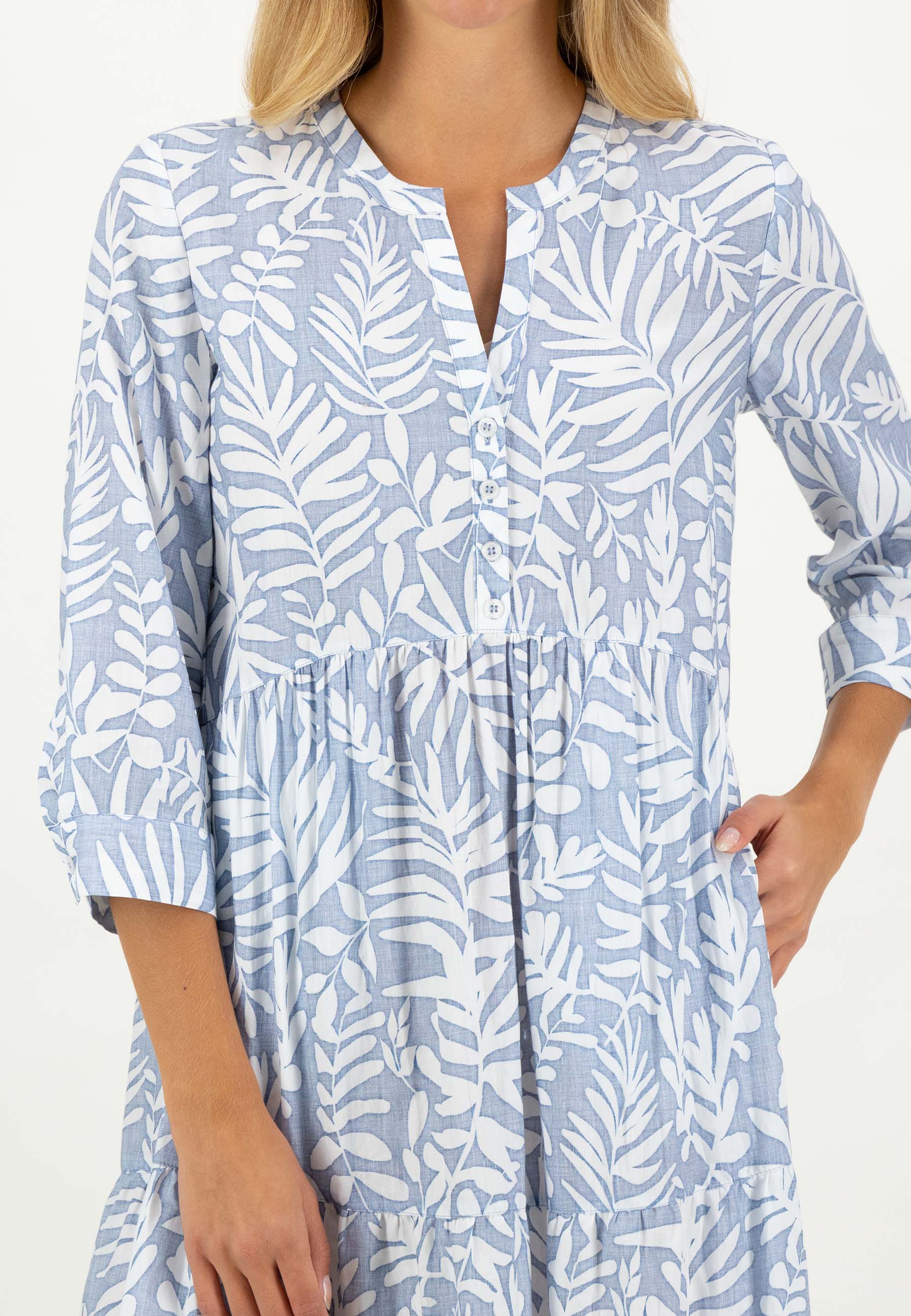 Хлопковое платье до колена с планкой на половину пуговицы и игривыми деталями.