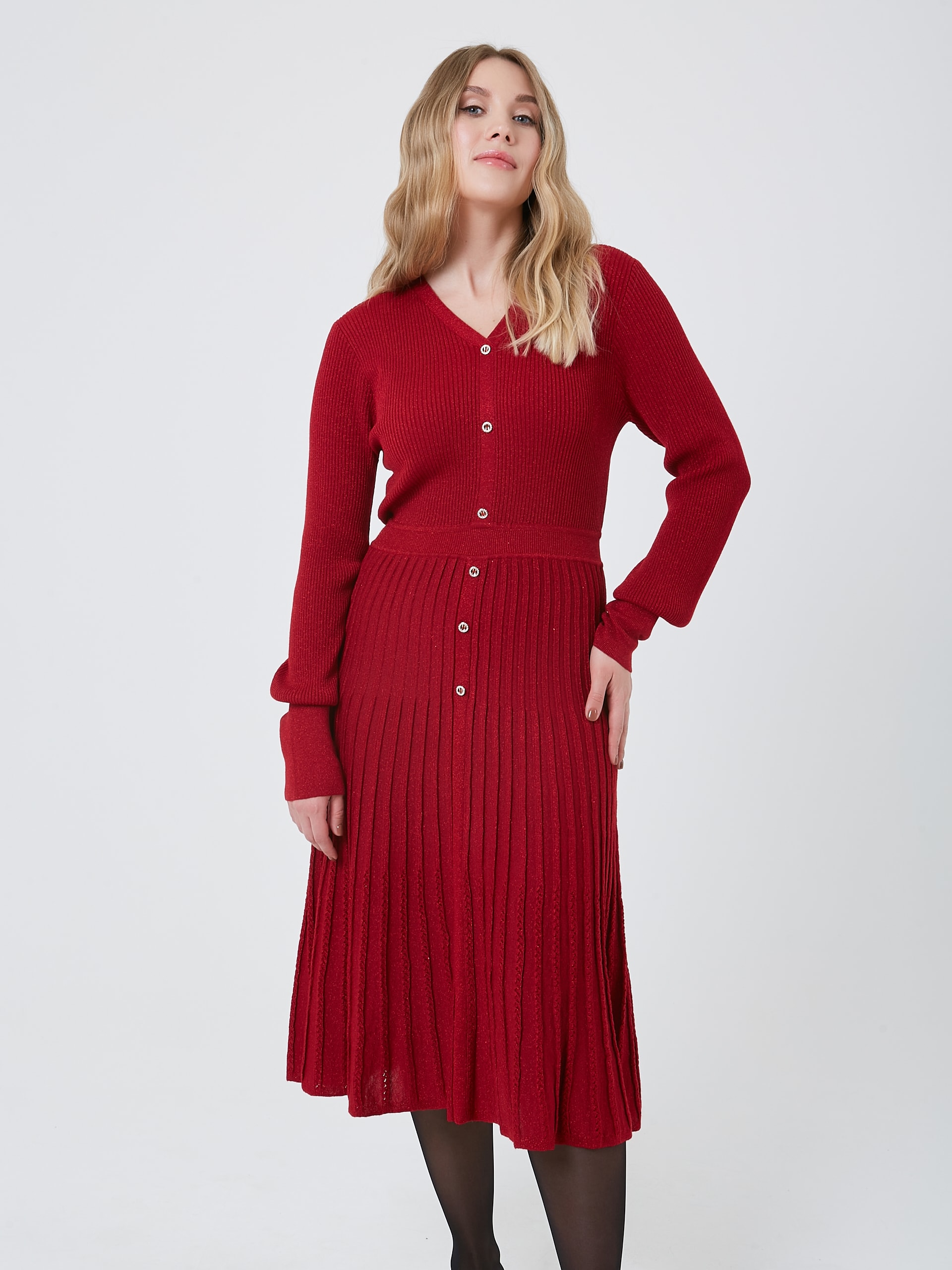 Женственное триколтажное платье карминового цвета - универсальная вещь для осенне-зимнего сезона. Осень-Зима'25/26. Капсула "Алые Паруса"