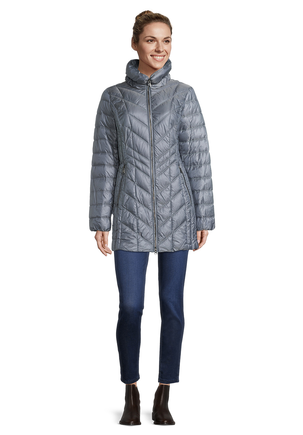 Куртка слегка приталенного силуэта. Удобная длина, практичный воротник-стойка, двойная застежка-молния, карманы на молниях. Ткань верха отлично защищает от влаги и ветра.