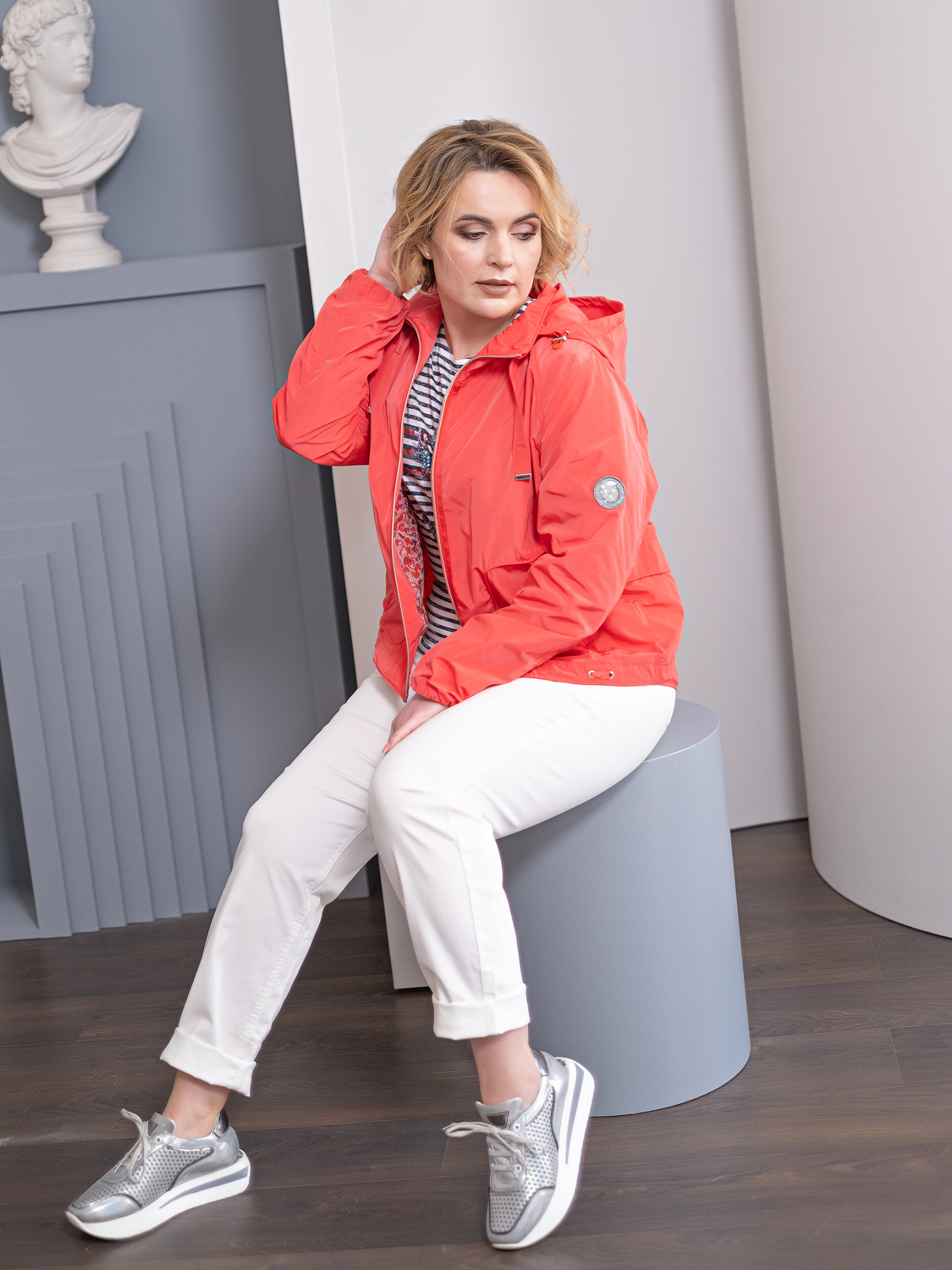 Яркая ветровка – незаменимый выбор этого сезона. Защита от влаги и ветра в сочетании с броским стилем. Воротник-стойка, застежка на молнию. Боковые карманы на скрытой молнии. Втачной рукав полной длины со сборками на манжетах.