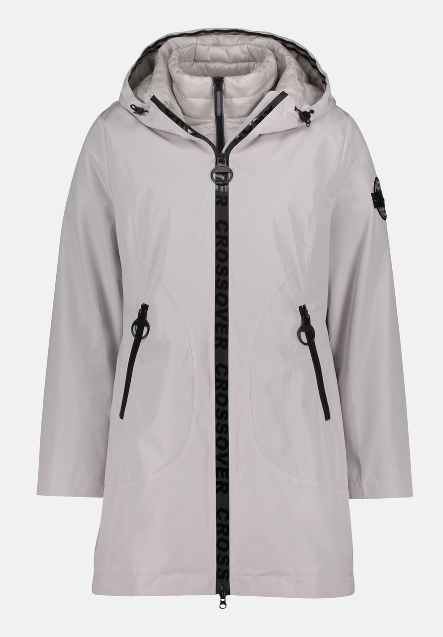Куртка состоит из внешней куртки из водонепроницаемой ткани и слегка стеганой внутренней куртки. Обемодели можно носить как вместе, так и по отдельности. Вы также получаете жилет, потому что рукава на внутренней куртке съемные.