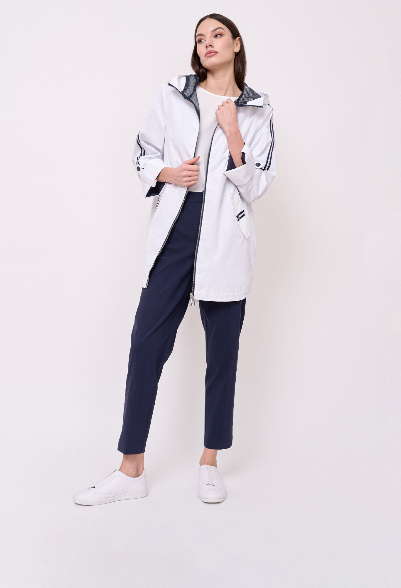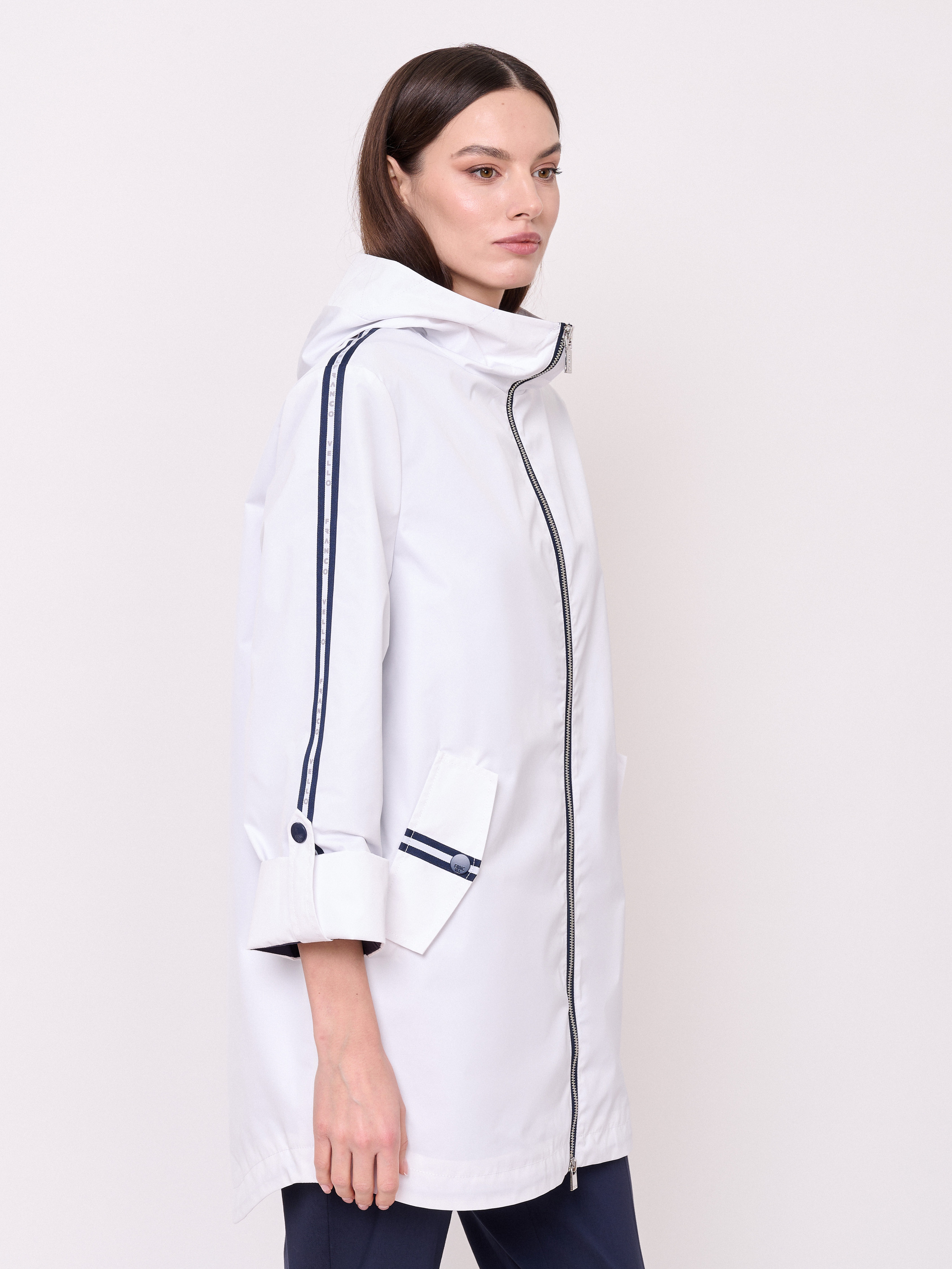 Застежка молния, несъемный капюшон, рукава длинные с хлястиками на кнопках, покрой прямой, без рисунка, без утепления, карманы прорезные с клапанами на кнопке, борты однобортное. Длина по спинке: 84 см.