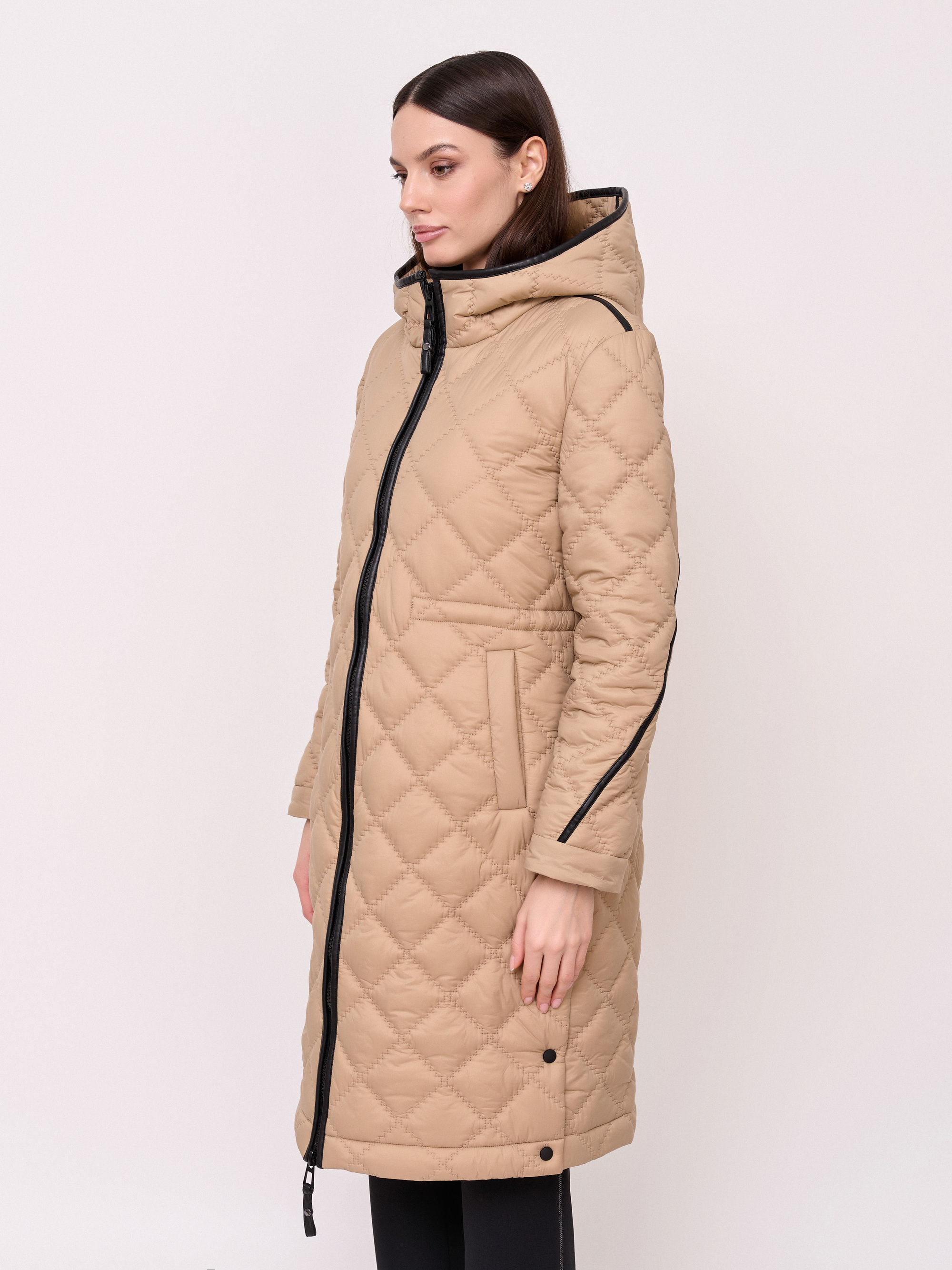 Детали: стеганое пальто, застежка молния, несъемный капюшон, рукава длинные, покрой прямой, без рисунка, утеплитель полиэстер, карманы прорезные, плотность утеплителя 150, без опушки, борты однобортное, боковые разрезы на кнопках. Плотность утеплителя: 150 см.