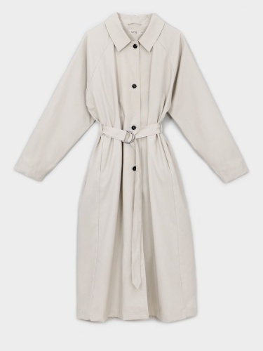 Однотонный легкий тренч на пуговицах. Рукава реглан полной длины. Отложной рубашечный воротник. В комплекте идет пояс из основного материала изделия.