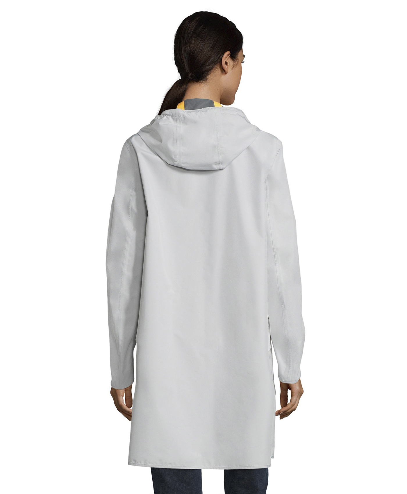 Стильный плащ отлично защитит в непогоду. Трендовый прямой крой. Капюшон на кулиске переходит в воротник-стойку. Застежка-молния закрыта ветрозащитной планкой. Кнопки на рукавах позволяют регулировать их прилегание и создавать защипы. С этим лаконичным плащом можно создать множество модных образов!
