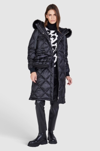 Удлиненная зимняя куртка от бренда MARC AUREL. Пуховик выполнен из водоотталкивающего атласа. Капюшон со съемным искусственным мехом и регулируемым шнурком обеспечивают оптимальный комфорт. Ососбенности модели: - Водоотталкивающий сатин. - Капюшон с искусственным мехом. - Накладные карманы на груди и прорезные по бокам. - Боковой разрез.