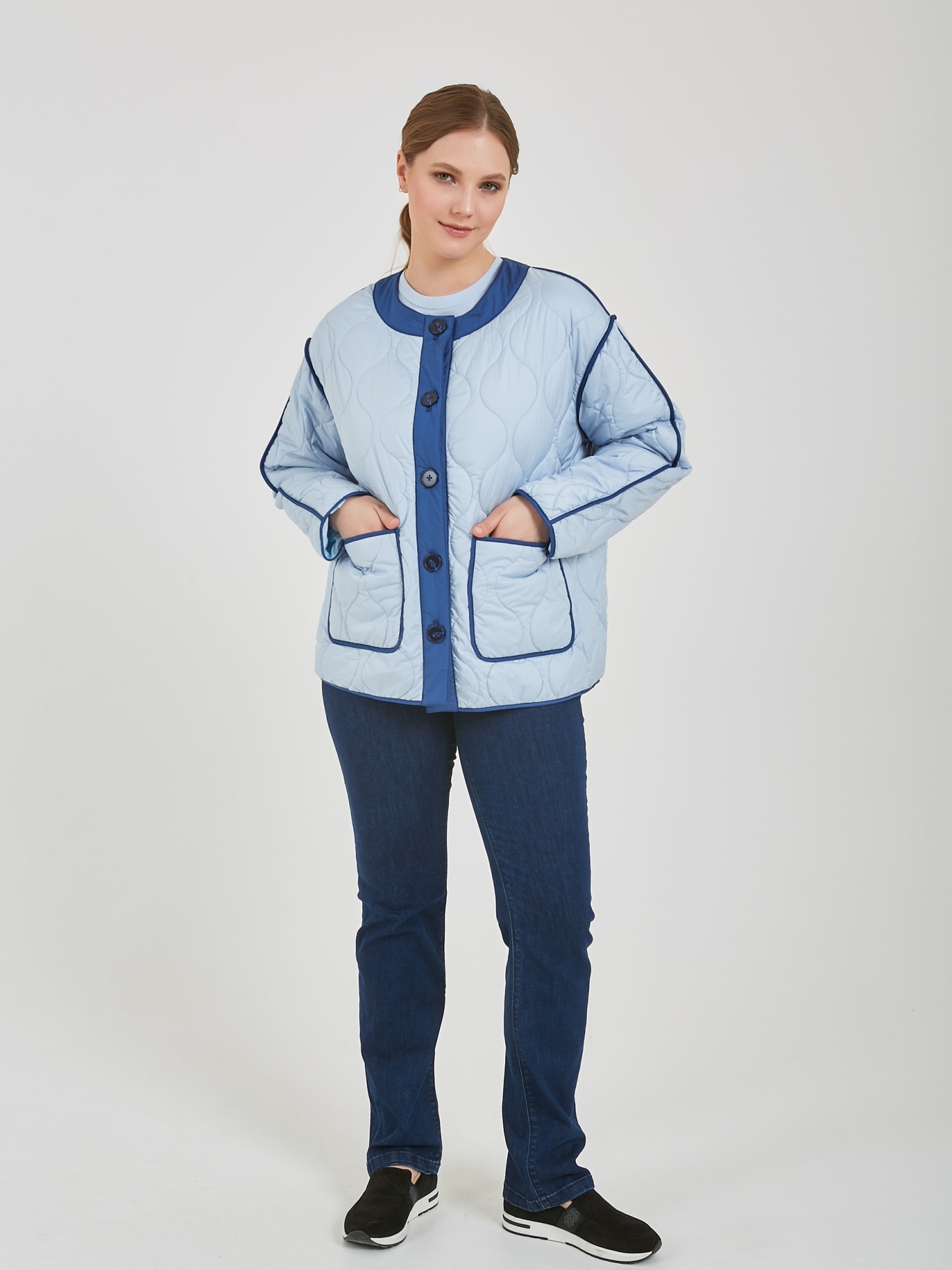 Женская утепленная куртка подарит тепло в прохладные дни. Женская куртка на пуговицах имеет удобный крой, стильный дизайн и практичность, который подходит для создания повседневных образов. Коллекция Весна-Лето 2025. Капсула "Санторини". Параметры модели: 95-64-101, рост 175, размер 44-46