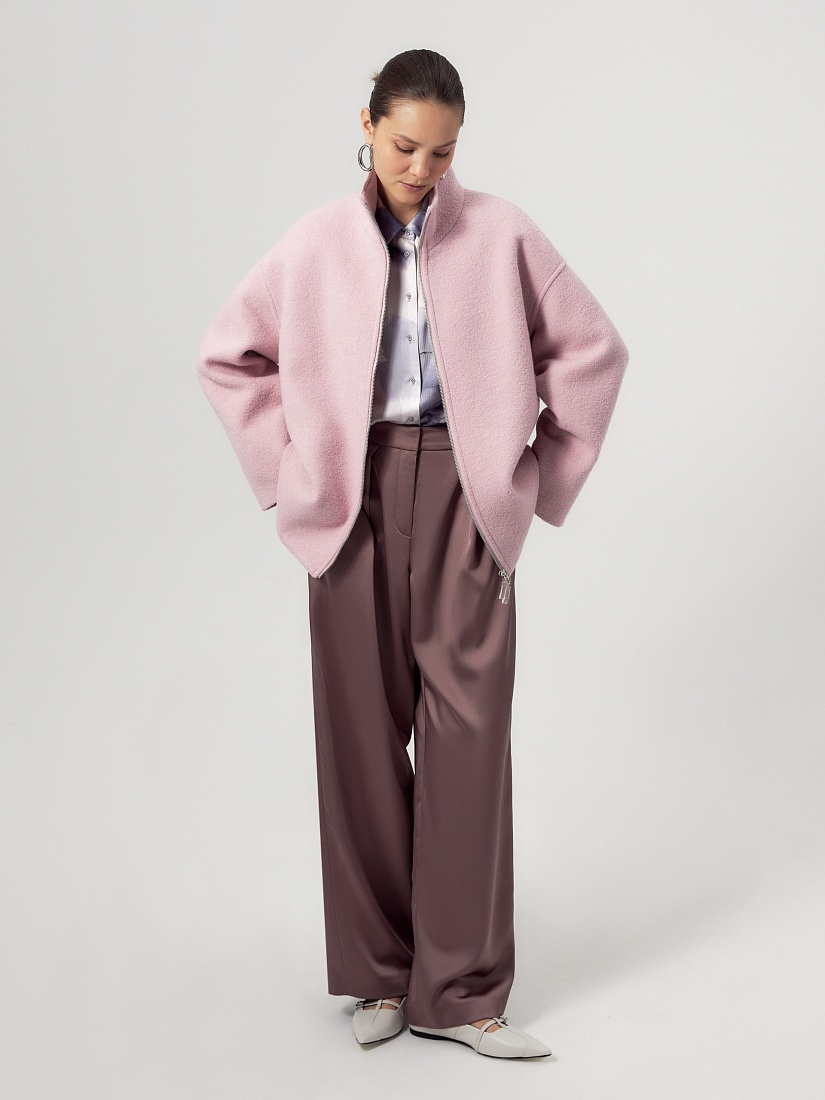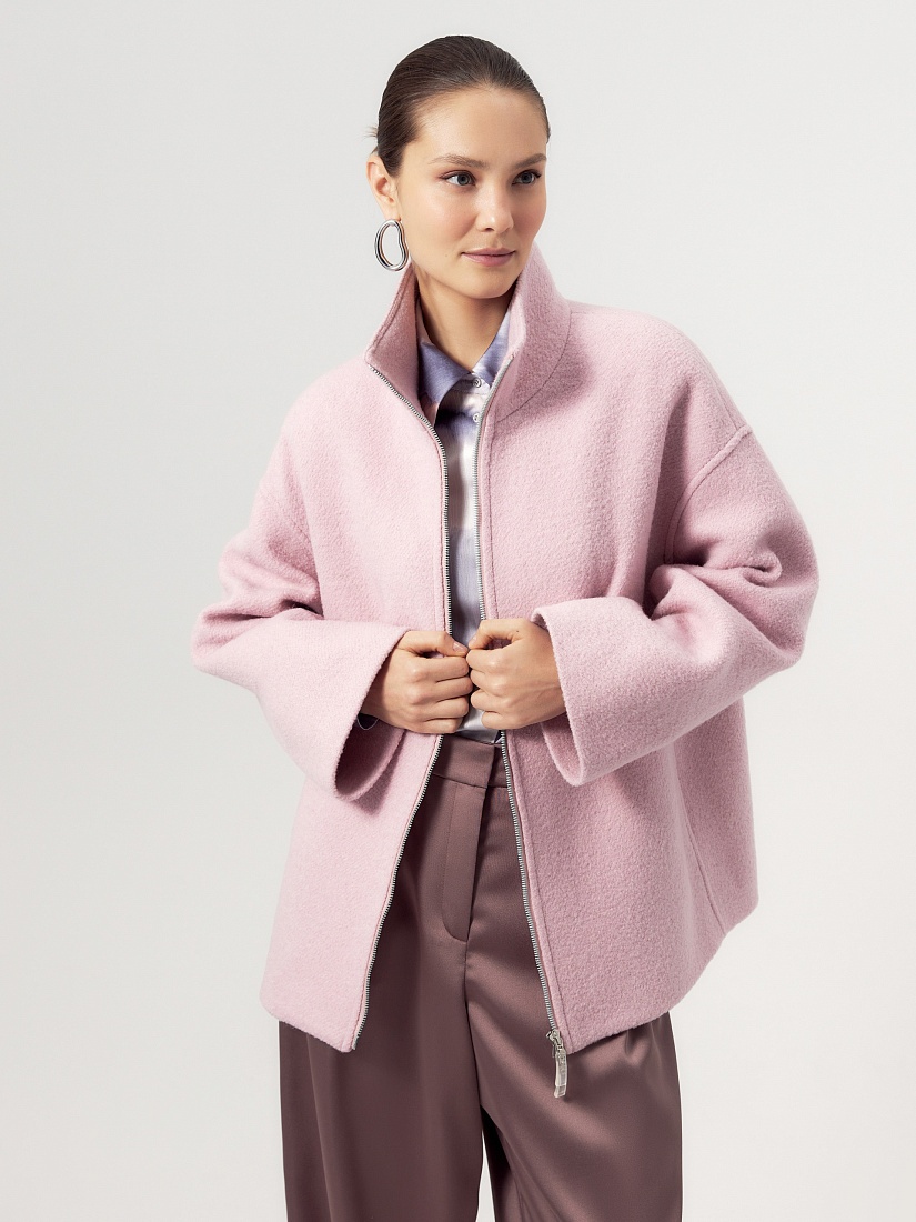 Укороченная компактная куртка из фактурной шерстяной ткани модного ягодного цвета. Широкие рукава, спущенное плечо, застежка на молнию и воротник стойка — такая куртка незаменима в прохладные дни начала весны. Куртка изготовлена с использованием запатентованных технологий: высокотехнологичная мембрана RaftPro надежно защищает от ветра, холода и перепада температур. Произведено в Санкт-Петербурге.