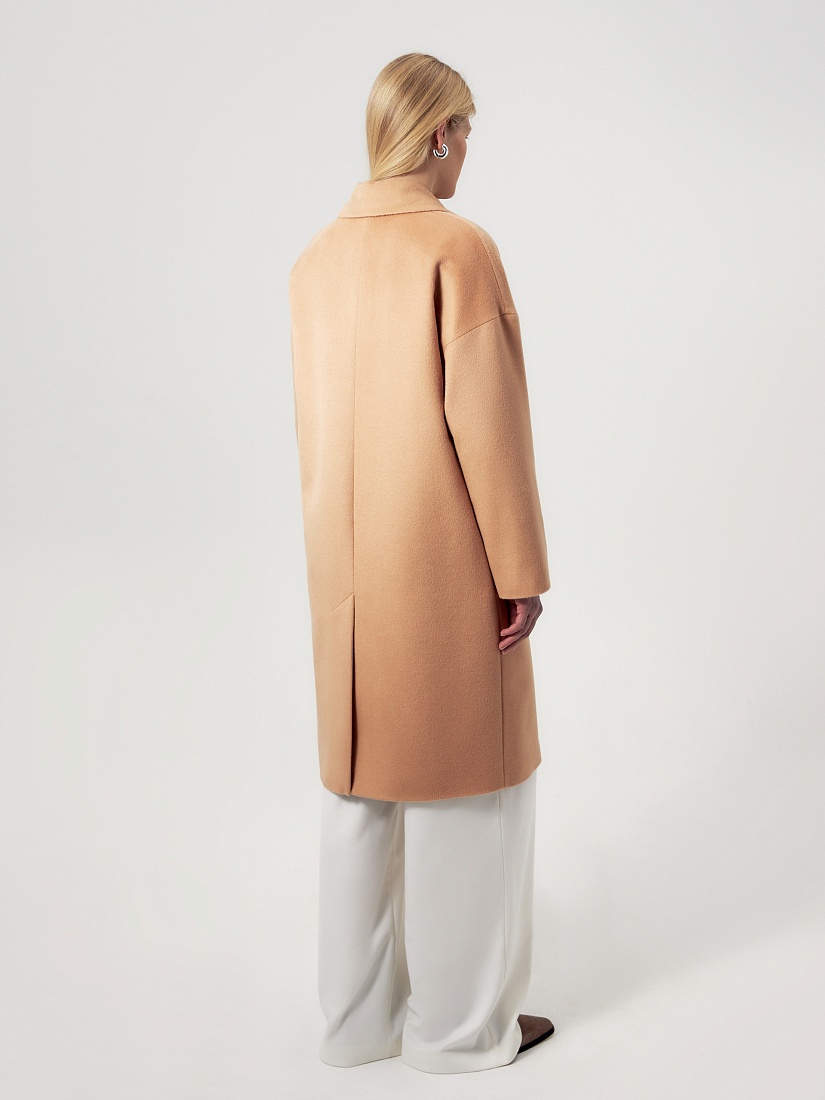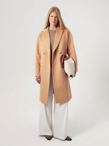 Двубортное укороченное пальто. Универсальная длина пальто чуть ниже колена позволяет с легкостью комбинировать его с любыми вещами. Комфортный рубашечный рукав дает возможность носить пальто даже на объемные вещи и при этом не стесняет движений, классический английский воротник придает пальто элегантности, а карманы-листочки служат дополнительным декоративным элементом, как и застежка на два ряда крупных пуговиц под натуральный рог.
