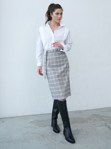 Юбка-карандаш в клетку. Застежка на молнию. В комплекте идет тканевый пояс.