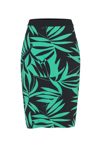 Юбка-карандаш миди. Трендовый принт с тропическими мотивами. Материал из вискозной смеси приятен к телу и обеспечивает комфорт.