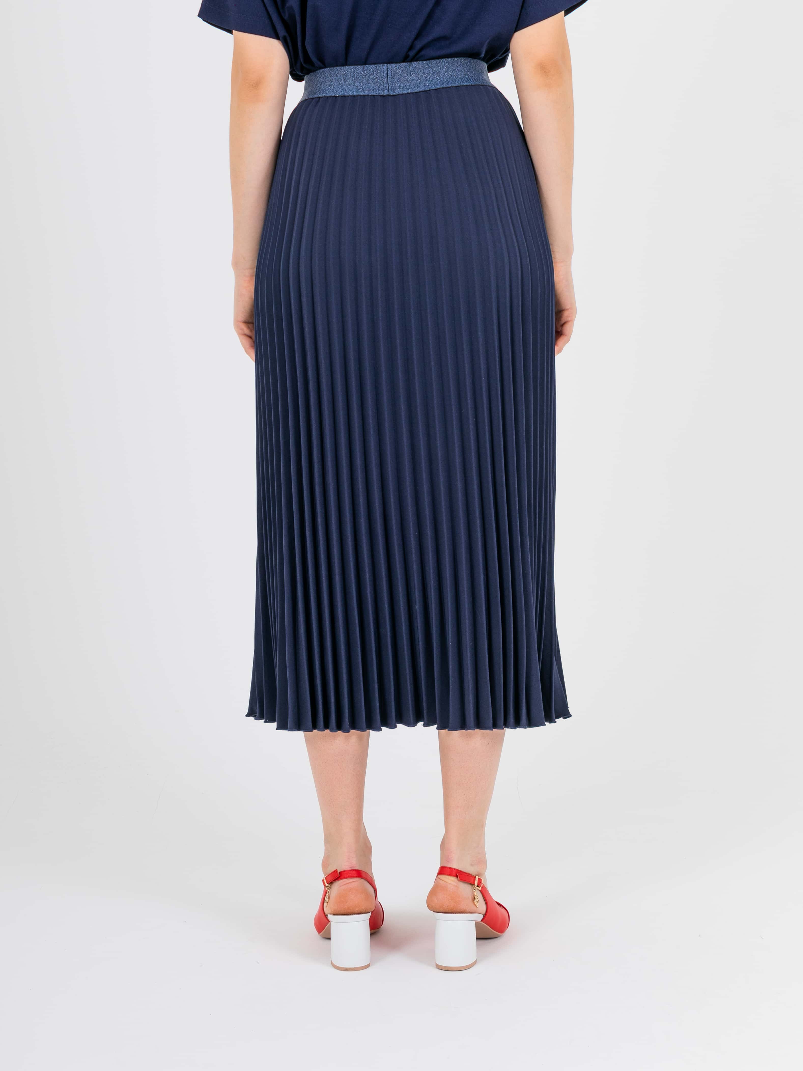 Легкая юбка полусолнце длиной до щиколоток, дизайнерская особенность модели – плиссировка. Верх юбки обработан резинкой.