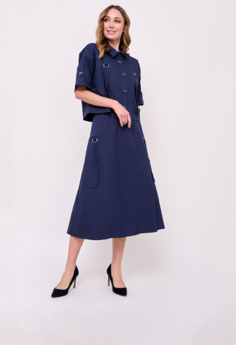 Без застежки, пояс на резинке, покрой расклешенный, посадка средняя, без рисунка, без карманов, конструктивные элементы хлястики, модель юбки расклешенная, длина юбки миди.