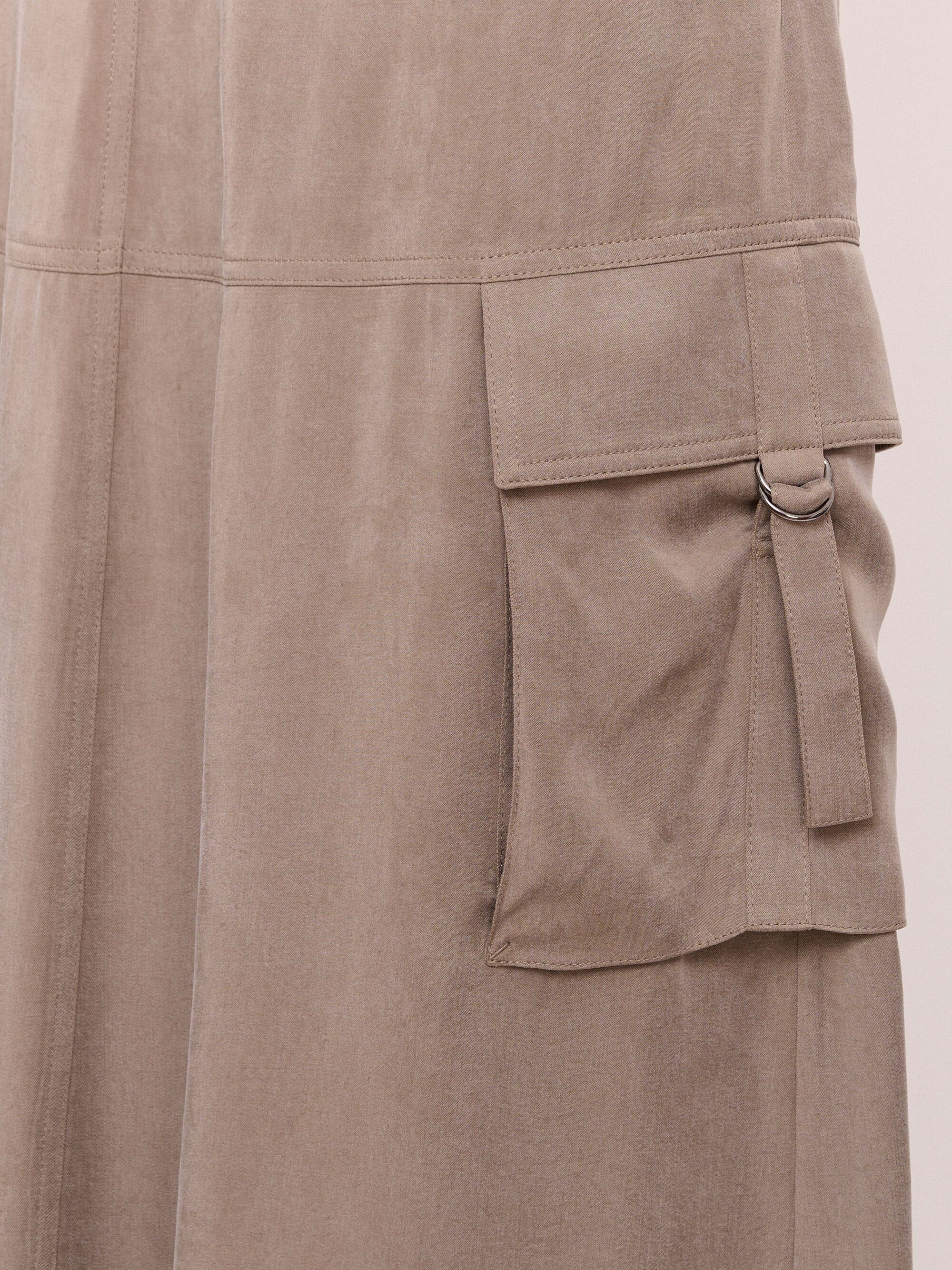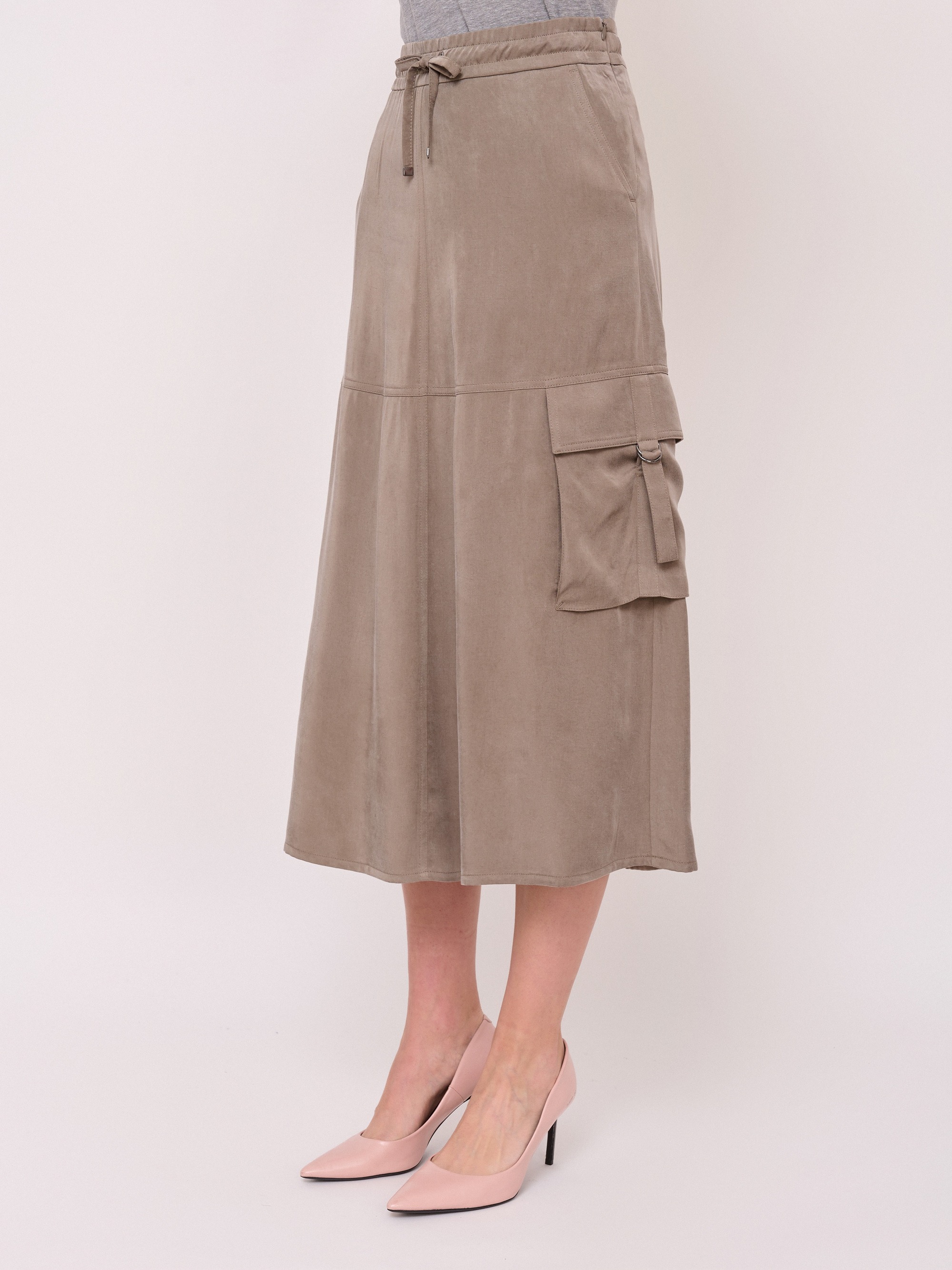 Детали: застежка молния, покрой расклешенный, посадка средняя, без рисунка, карманы косые, конструктивные элементы крой клиньями, модель юбки расклешенная, длина юбки миди. Длина по спинке: 81 см.