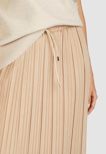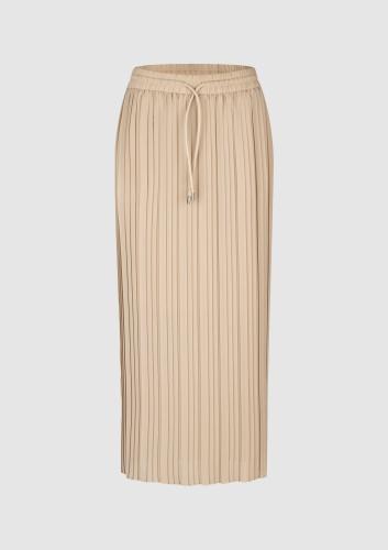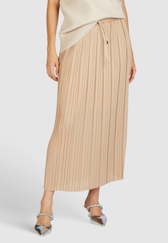 Эта высококачественная юбка-миди прямого Н-образного силуэта дополнена эластичными манжетами и завязкой на шнурке. Модель из плиссированного крепа отличается особой мягкостью, ее плавный дизайн обеспечивает удобство в ношении и бескомпромиссный женственный вид.