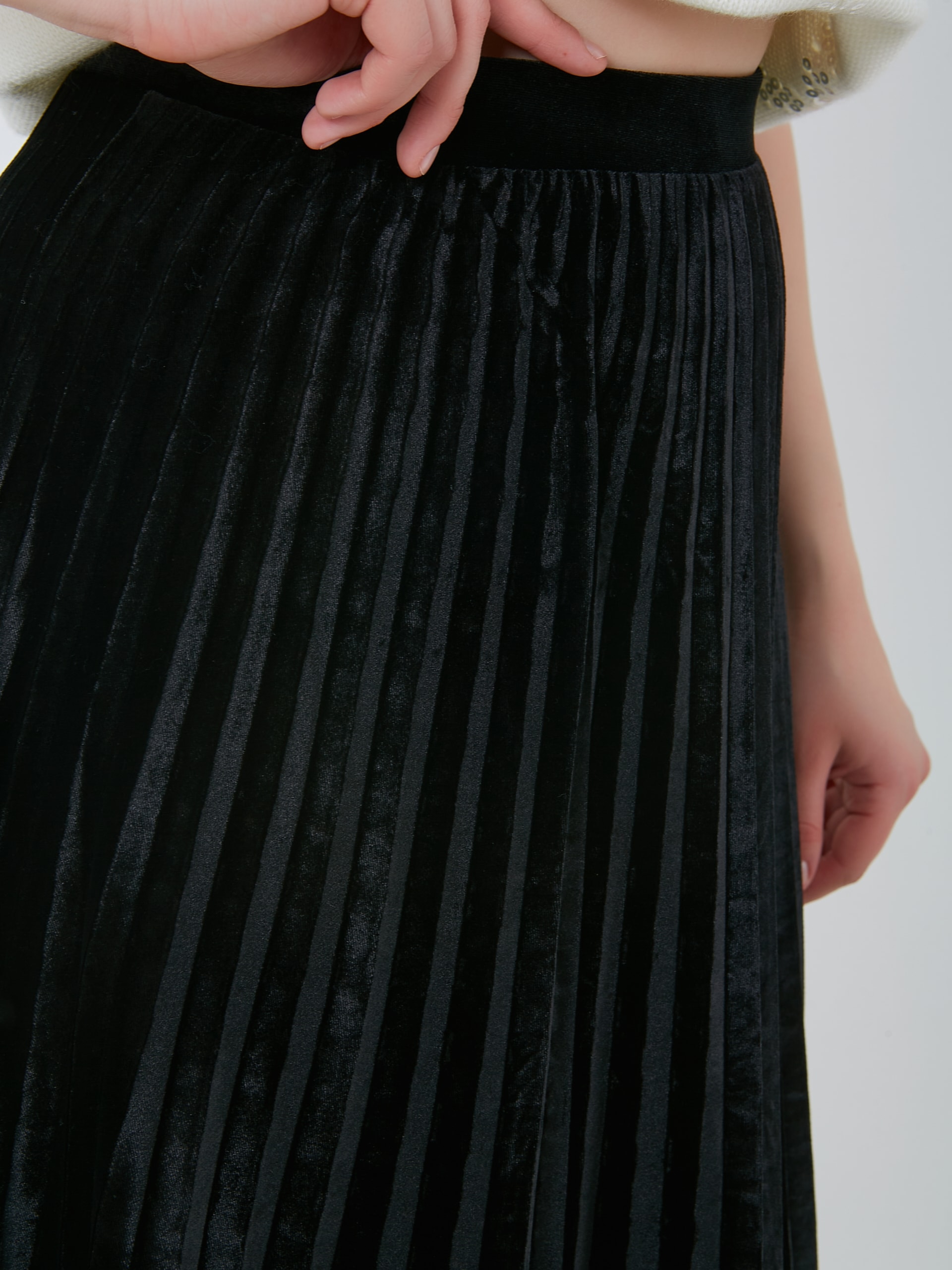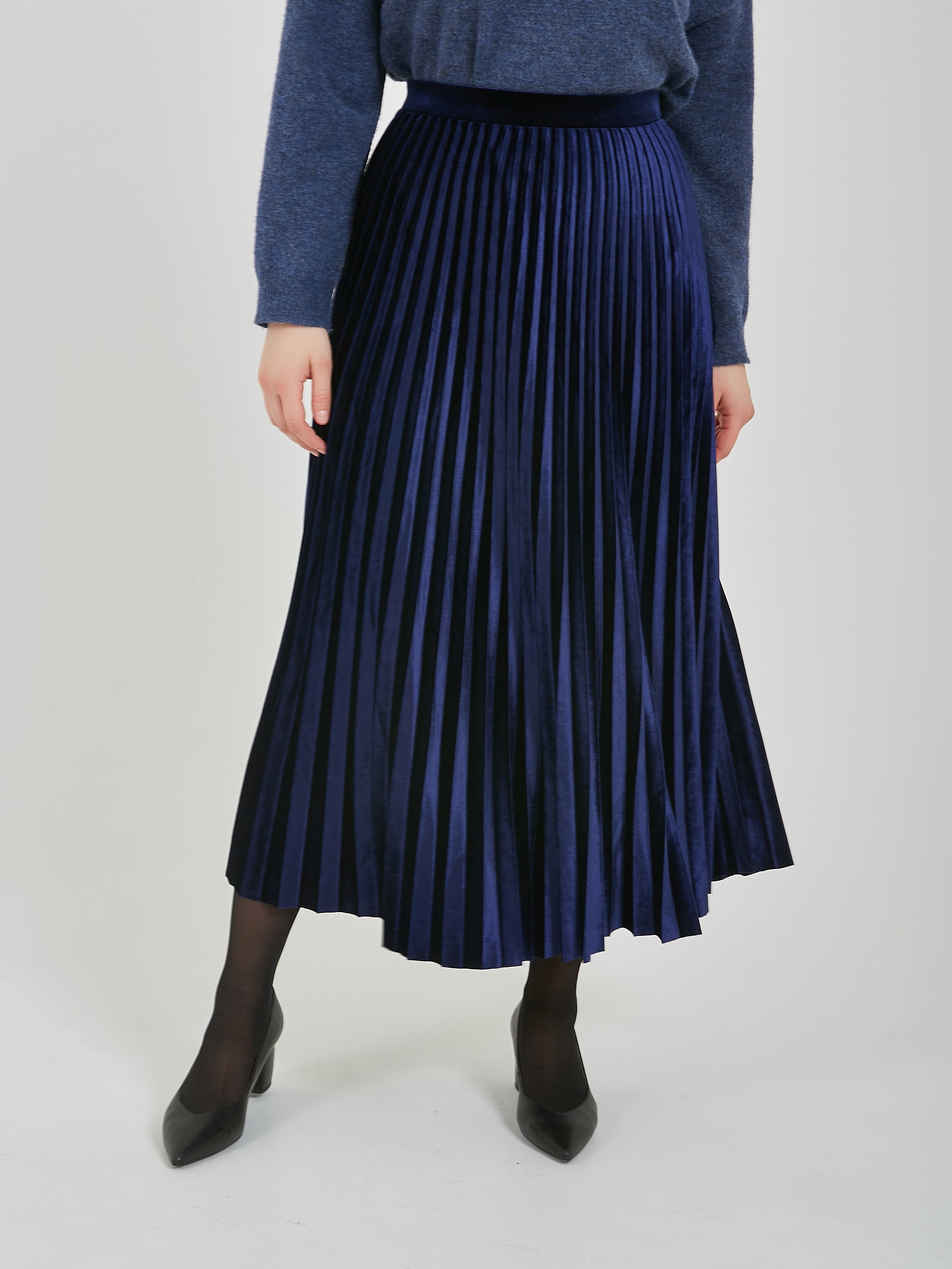 Бархатная юбка плиссе в сапфирово - синем и черном оттенках.