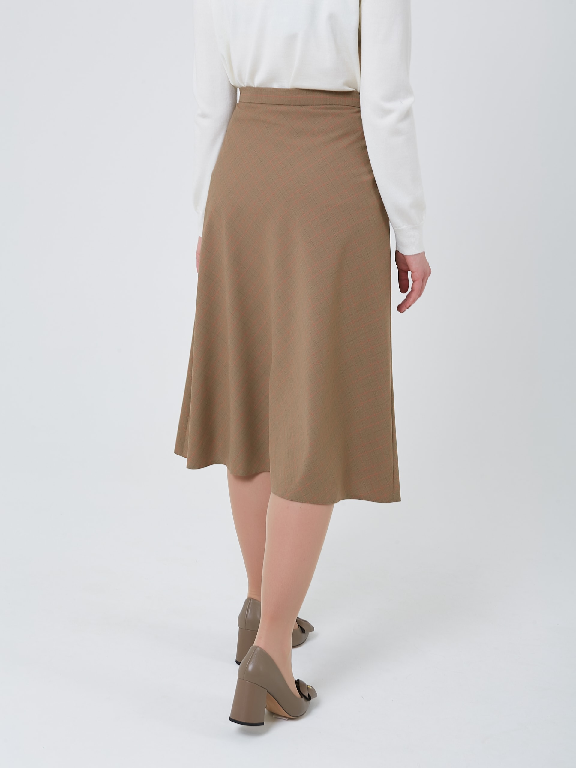 Юбка-трапеция в длине миди, актуального оттенка "кофе с молоком" и ненавязчивой клеткой. Коллекция Осень-Зима 2024-2025. Капсула "Крадущийся тигр, затаившийся дракон".