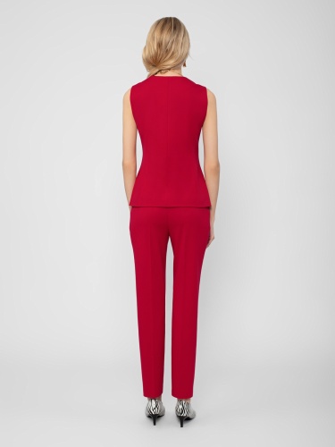 Жилет на подкладке полуприлегающего силуэта с v-образным вырезом горловины и прорезными карманами-листочками. Застежка спереди на пуговицы.