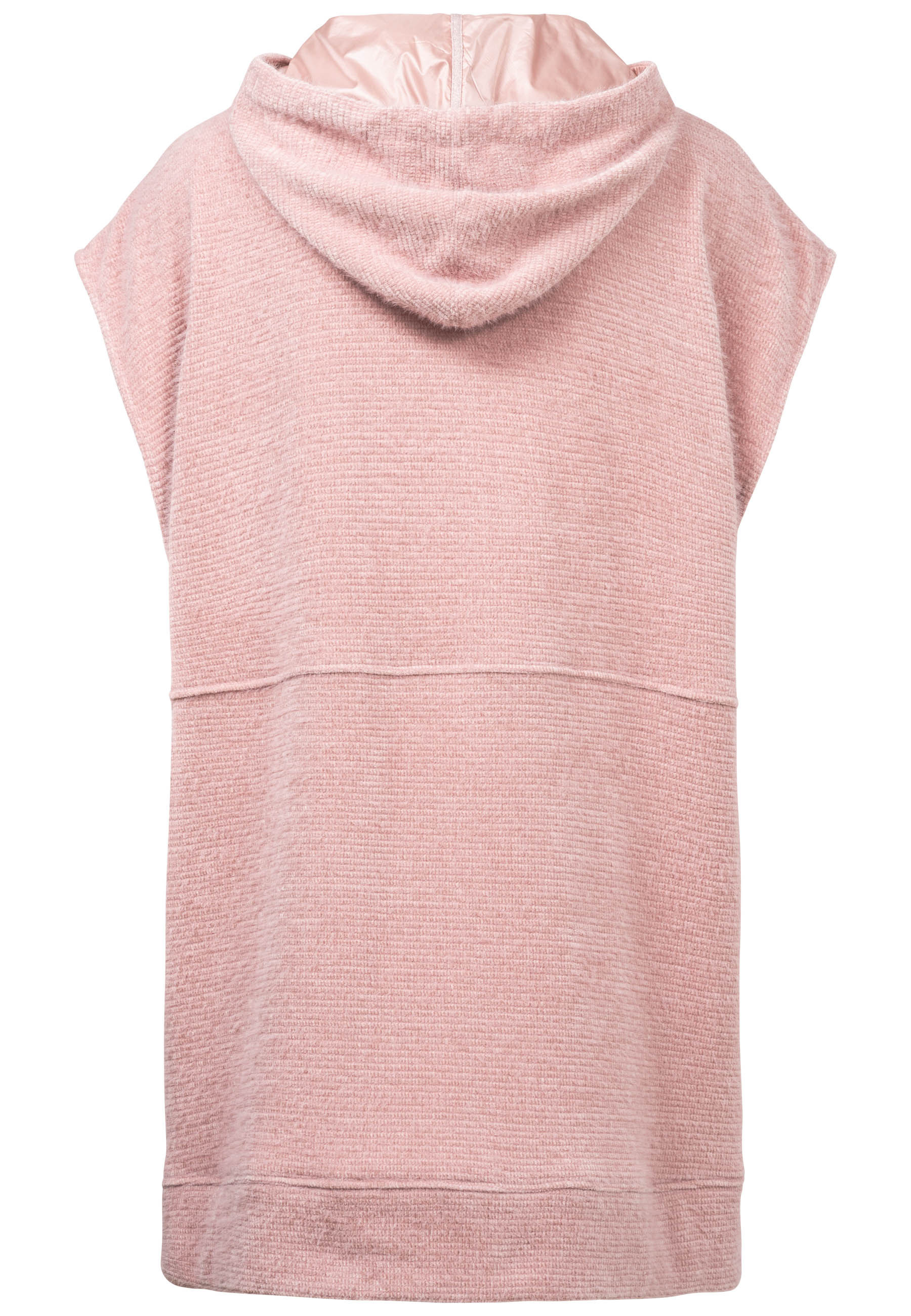 На сайте указаны российские размеры. Длинный жилет из удивительно мягкого материала впечатляет своей длинной посадкой и широкими плечами, которые можно легко сочетать с шикарной блузкой или классической рубашкой с длинными рукавами. Красиво мерцающий контрастный материал используется не только на внутренней подкладке повседневного капюшона, но и на лямках капюшона, боковых карманах и высококачественной молнии. Модель ростом 177 см Измерения для 44 размера: