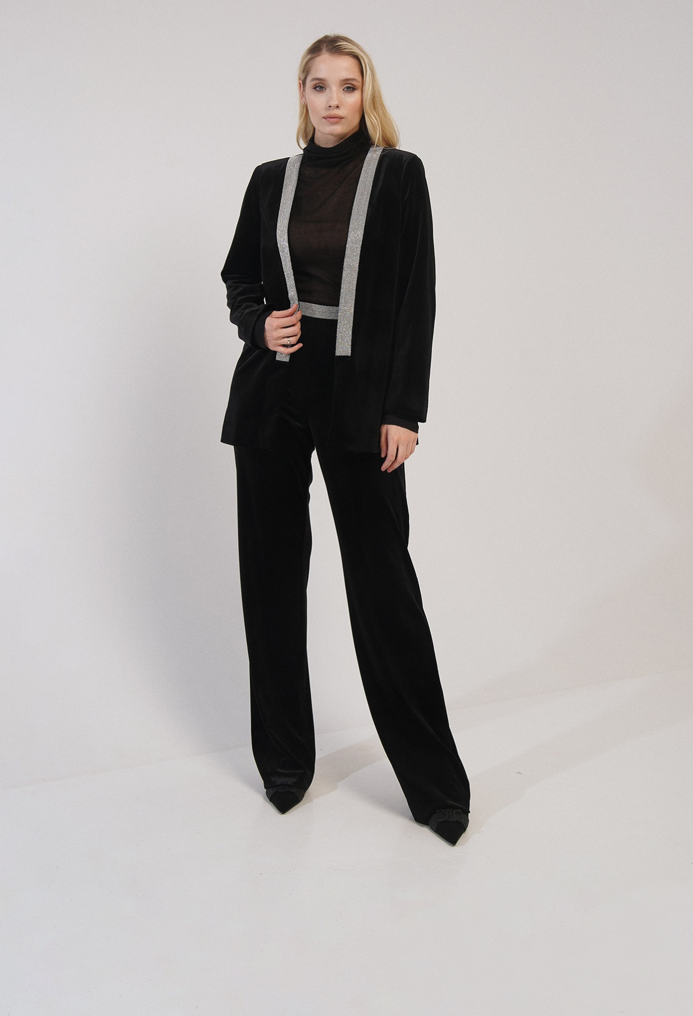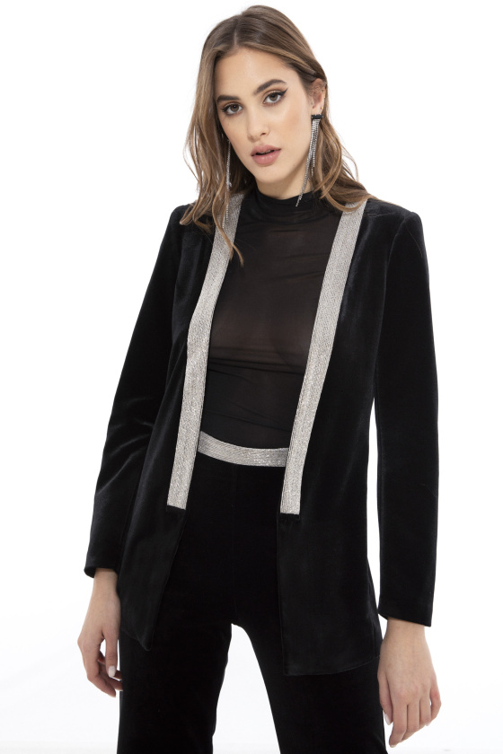 На сайте указаны российские размеры. Украшенный бархатный жакет прямого кроя с длинными рукавами. Дополняют модель аппликации из страз. Идеальный образ составят брюки NISSA (арт. P11910)