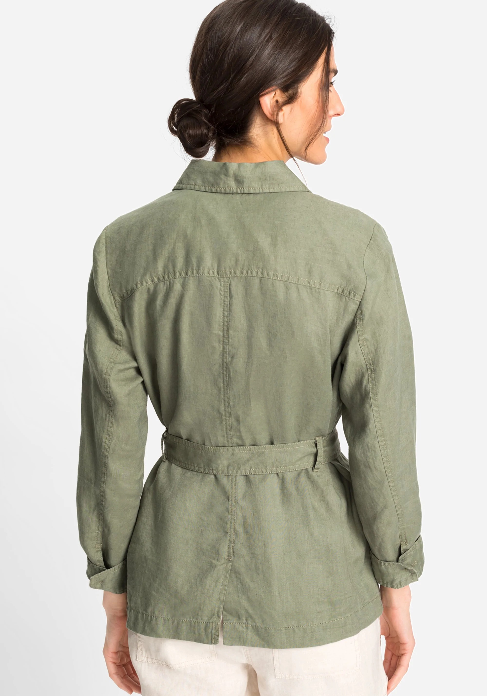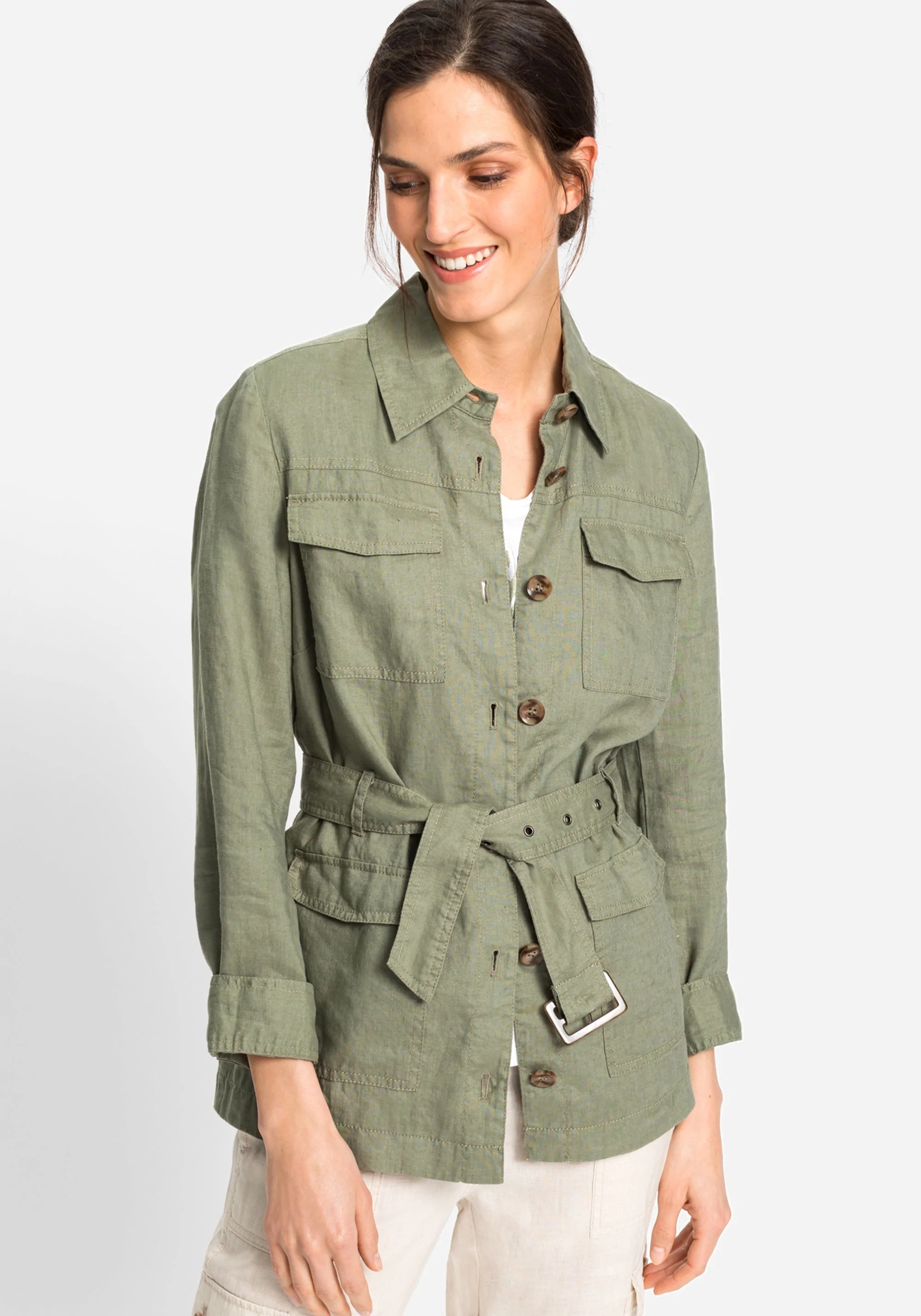 На сайте представлены Российские размеры. Жакет с воротником и планкой на пуговицах по всей длине, а также особая деталь на поясном ремне с большой черепаховой пряжкой делают эту куртку по-настоящему эффектной. Четыре накладных кармана с клапанами дополняют жакет.